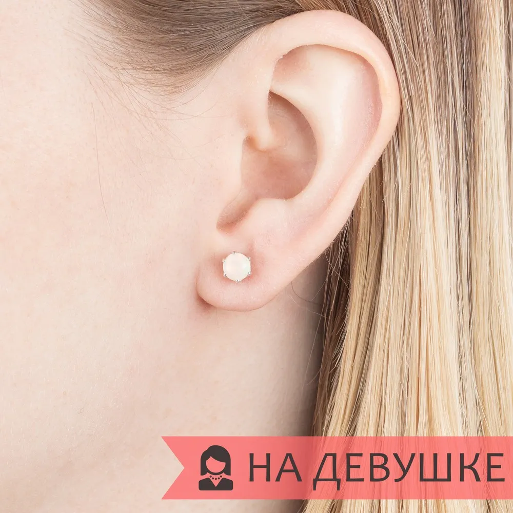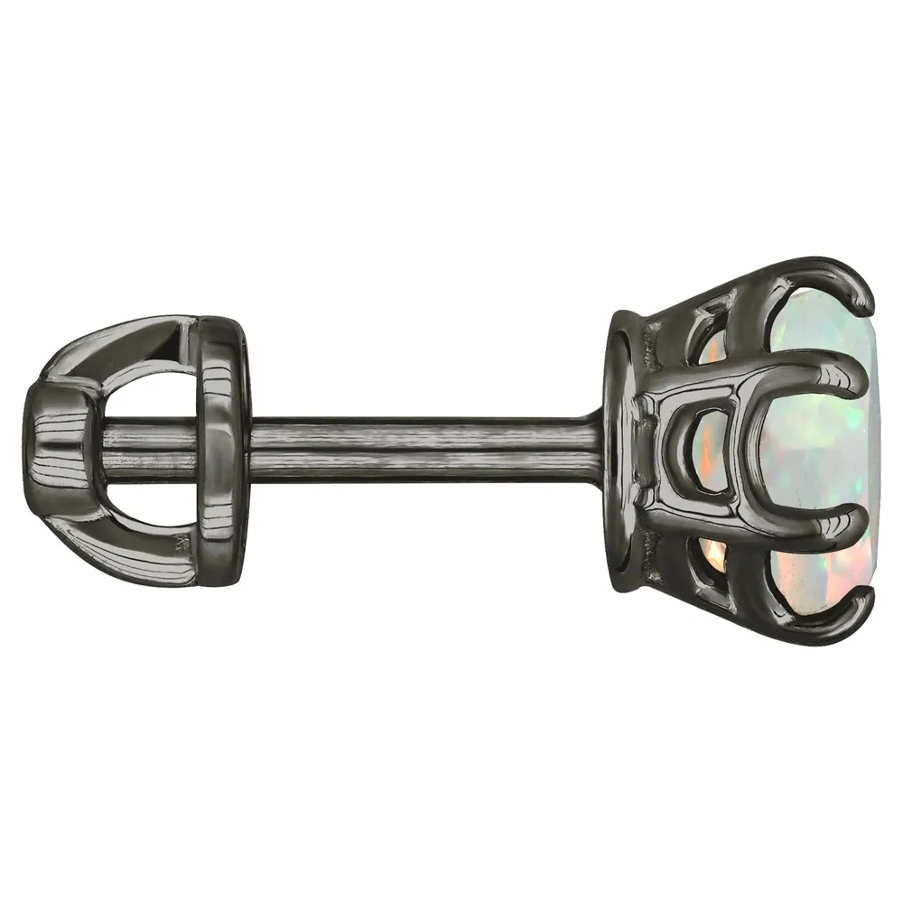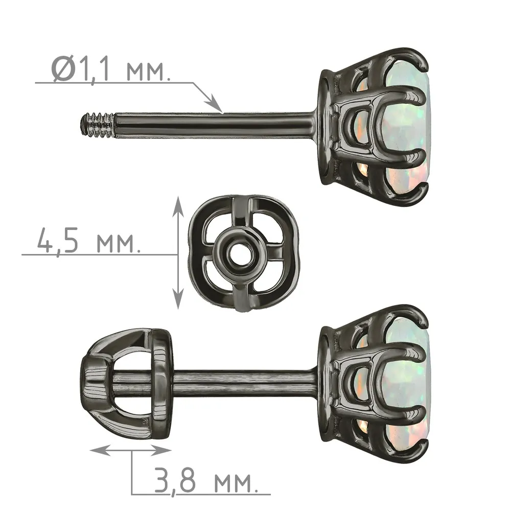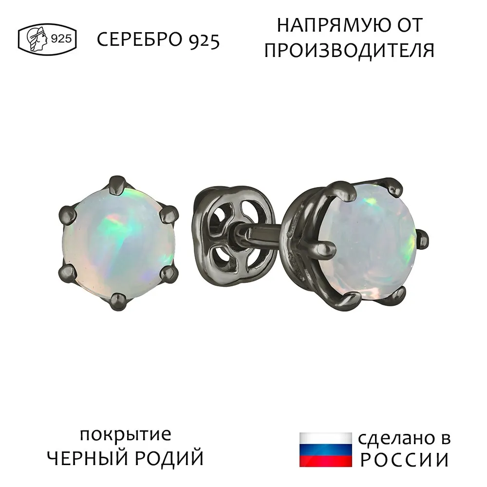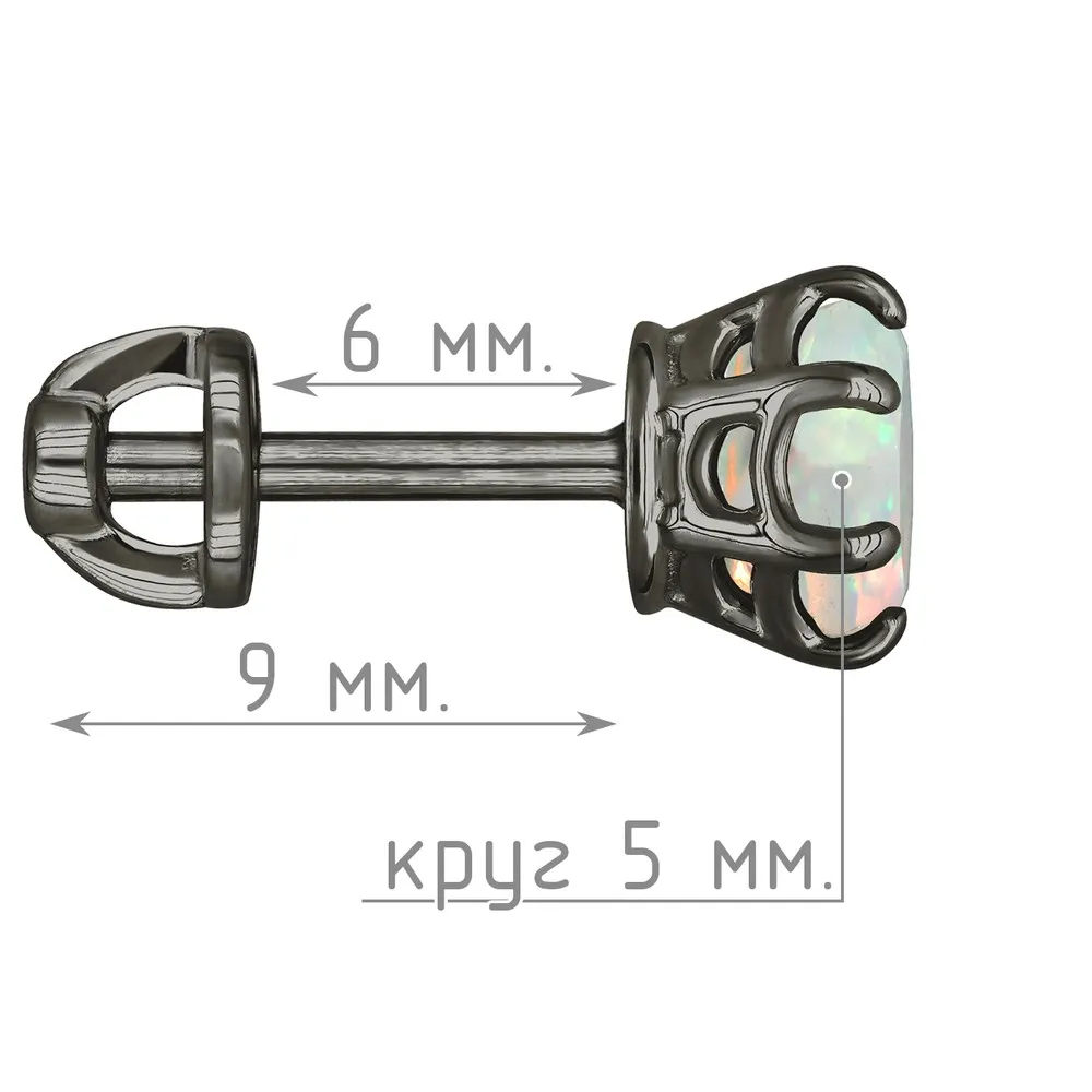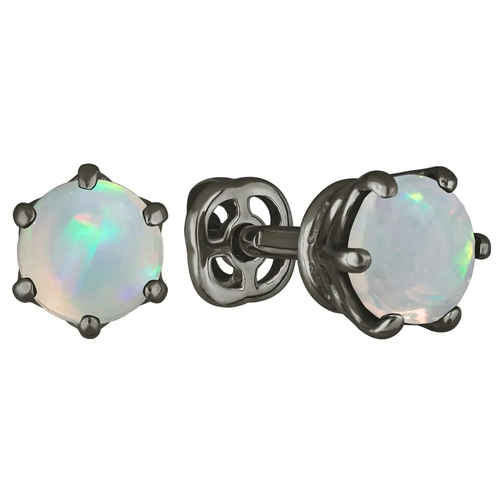 Серебряные серьги гвоздики (пусеты) с натуральным опалом (1 класс) 5 мм. / Черный Родий.