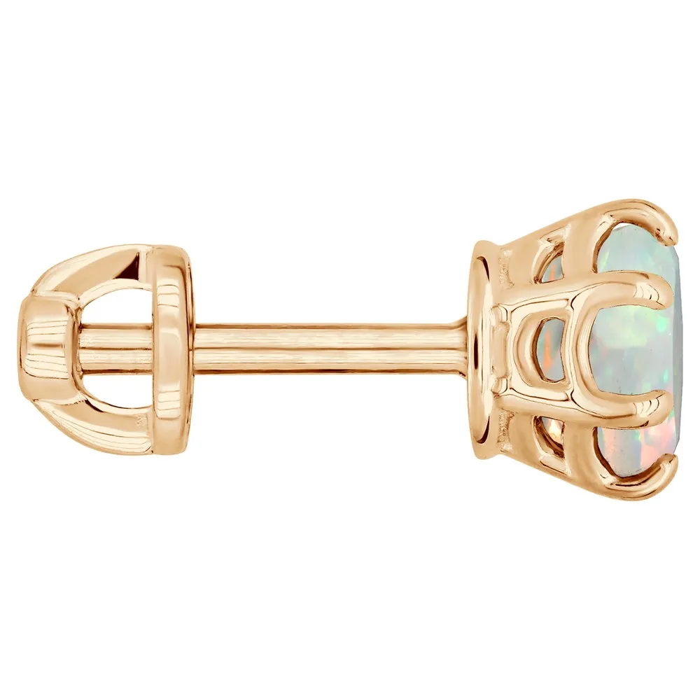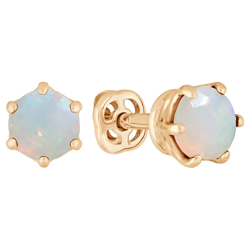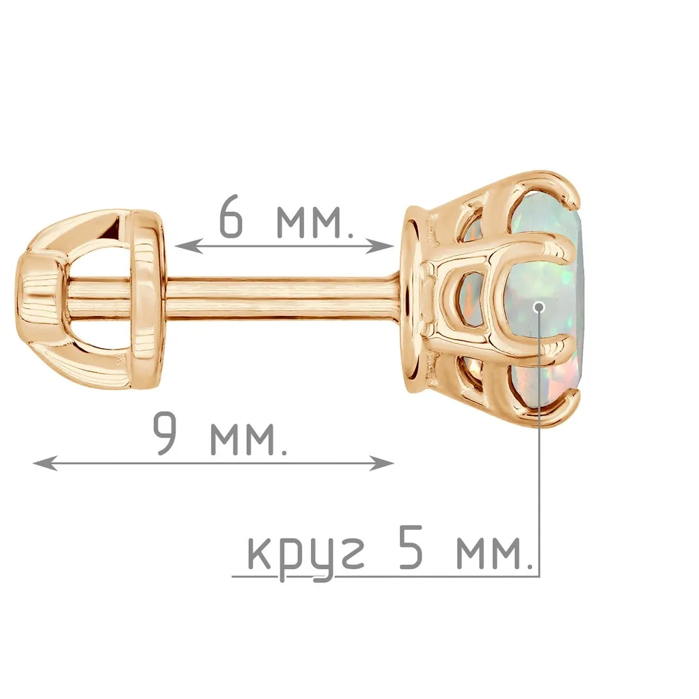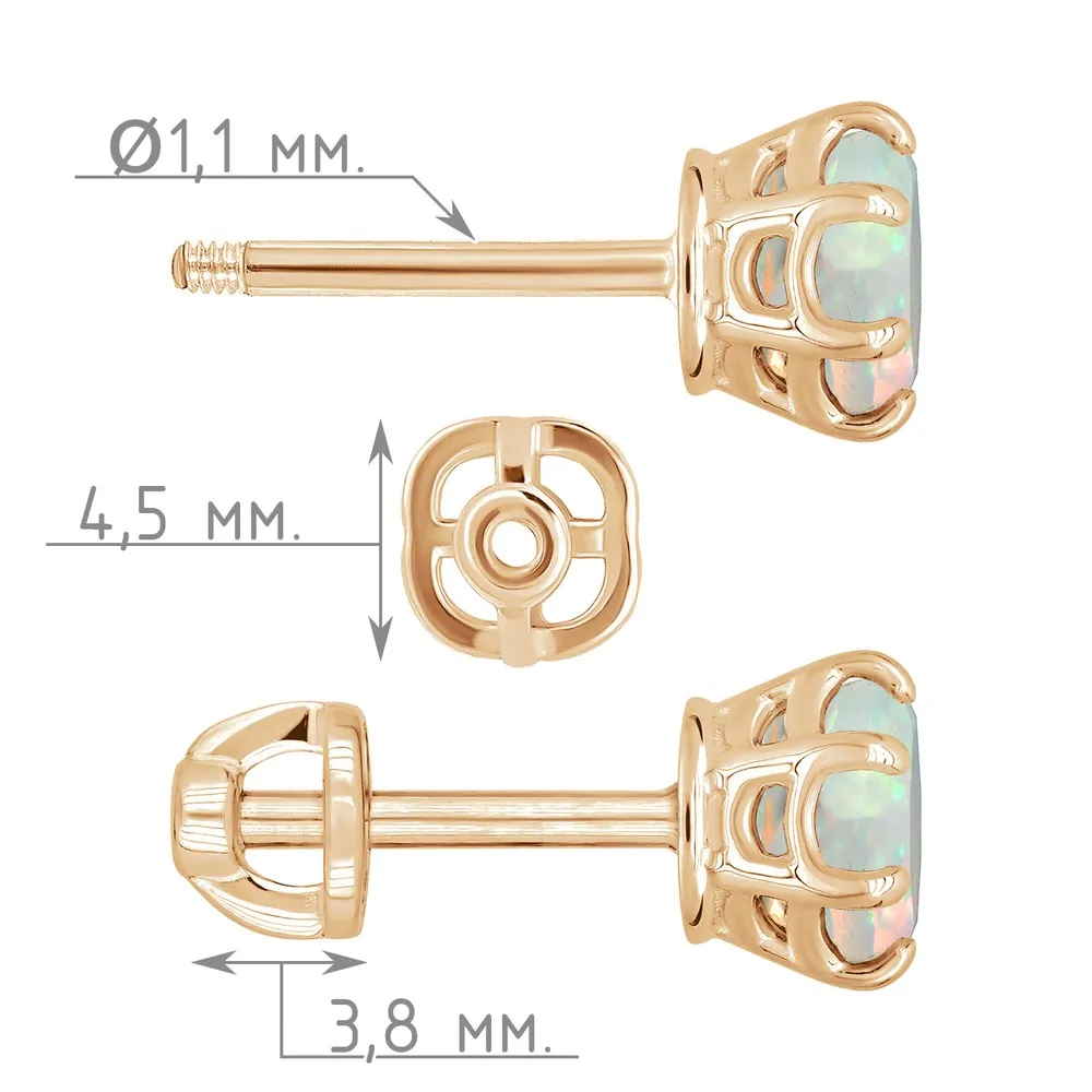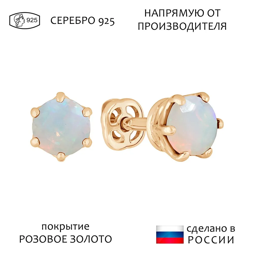 Серебряные серьги гвоздики (пусеты) с натуральным опалом (1 класс) 5 мм. / Розовое Золото.