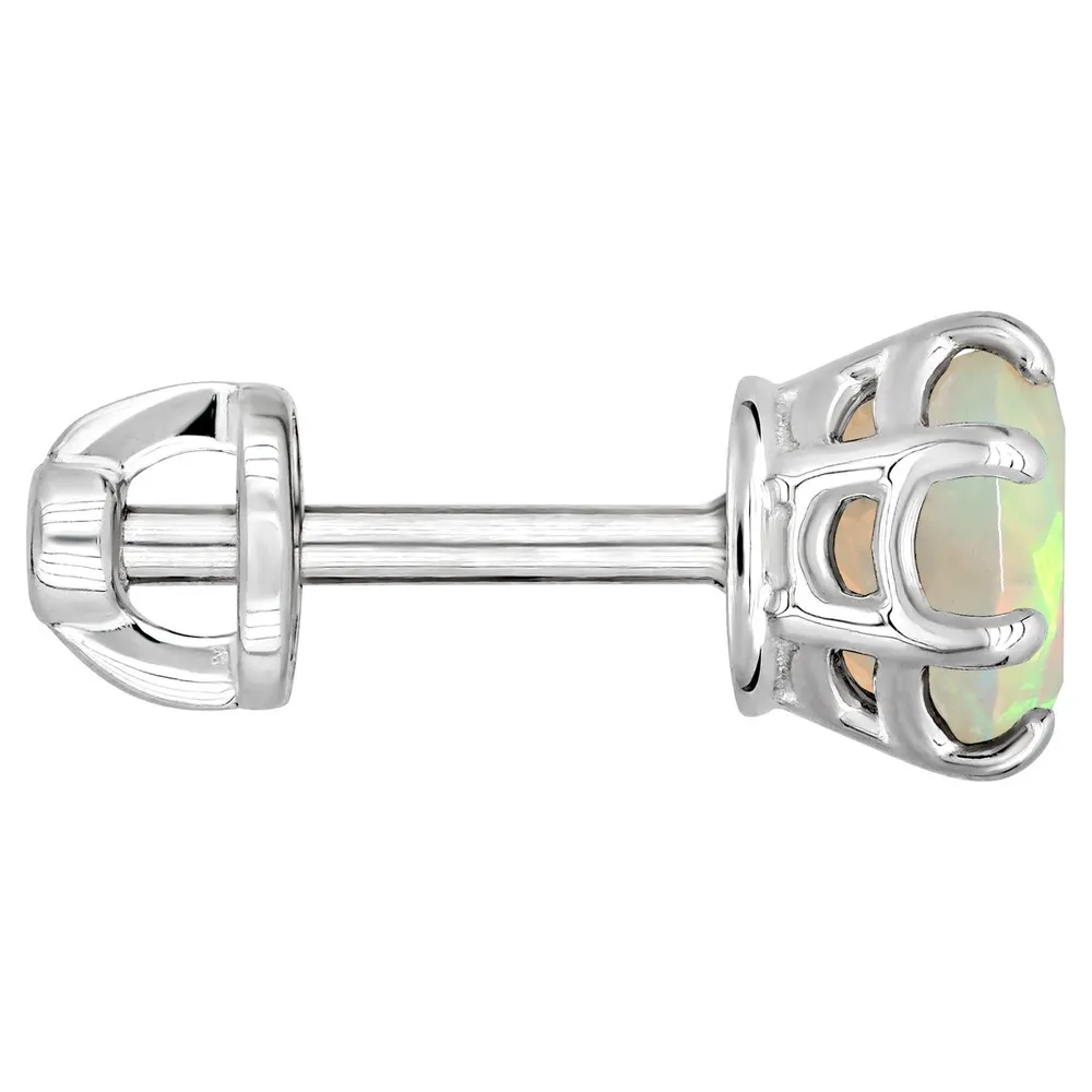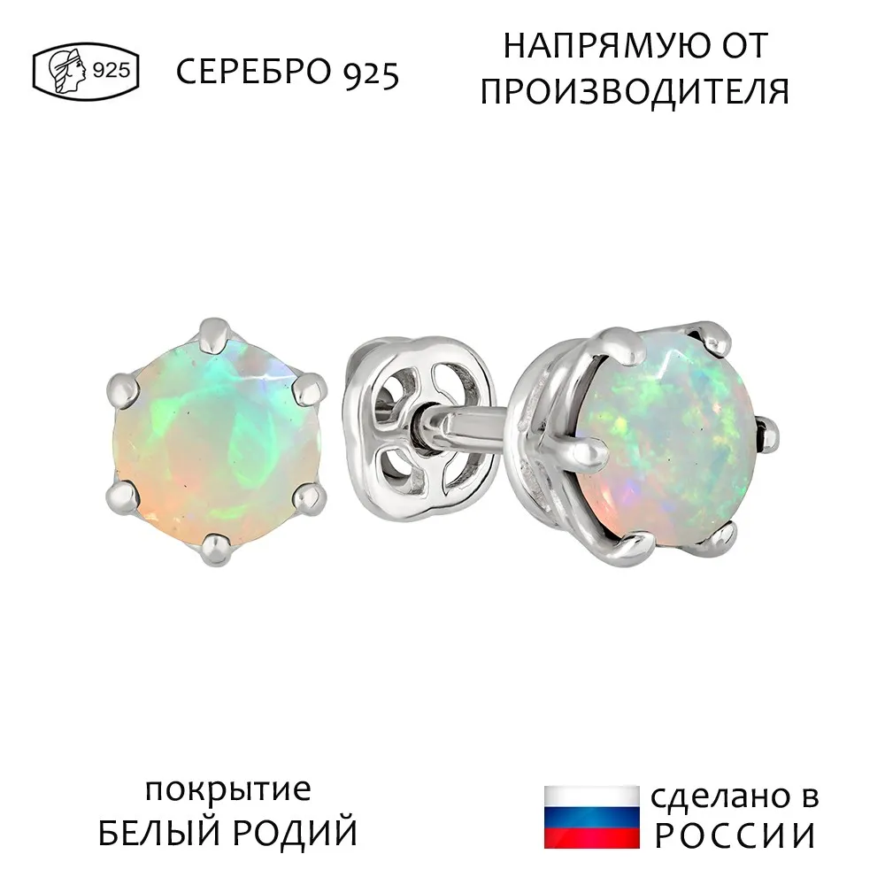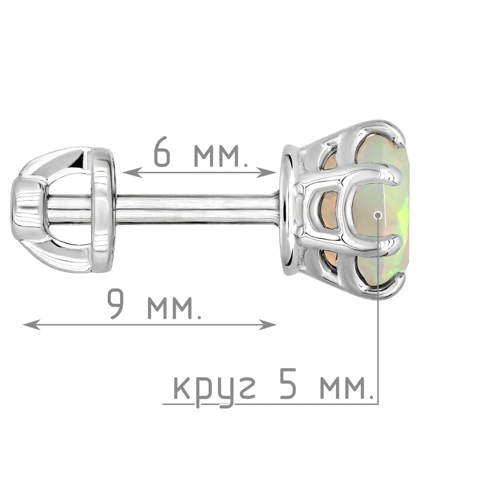 Серебряные серьги гвоздики (пусеты) с натуральным опалом (Экстра) 5 мм. / Белый Родий.