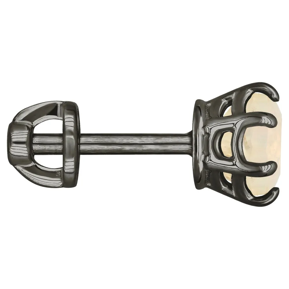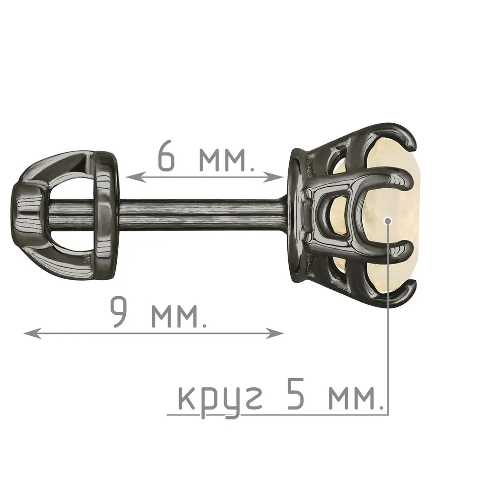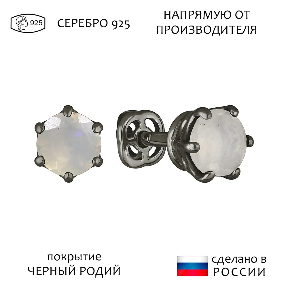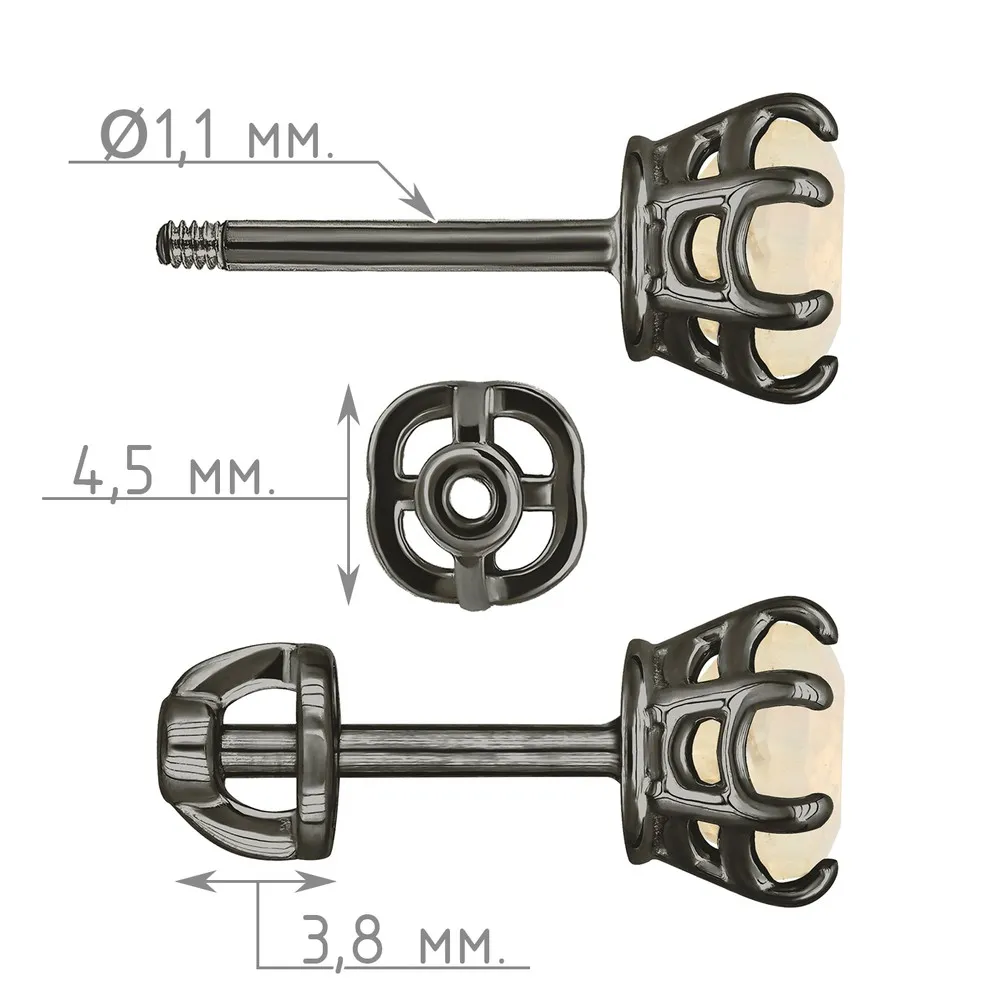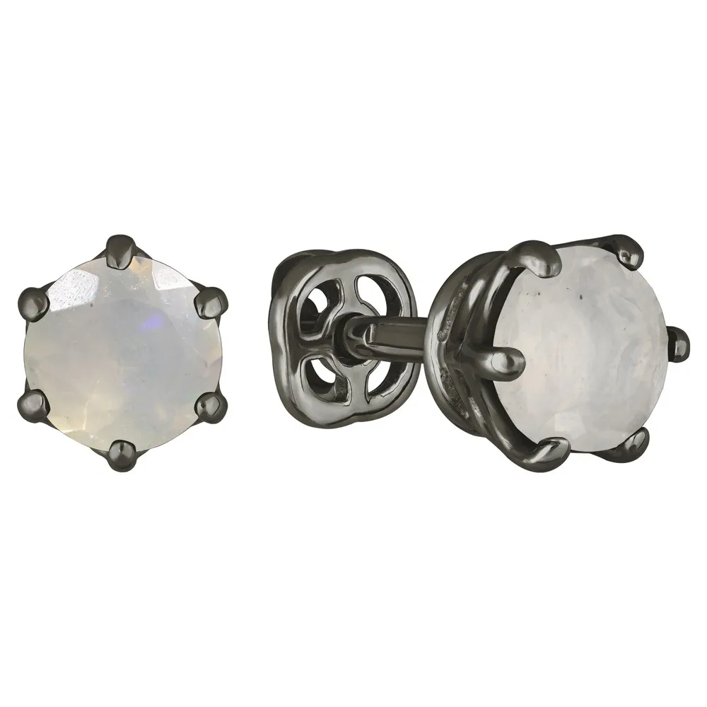 Серебряные серьги гвоздики (пусеты) с натуральным опалом (2 класс) 5 мм. / Черный Родий.