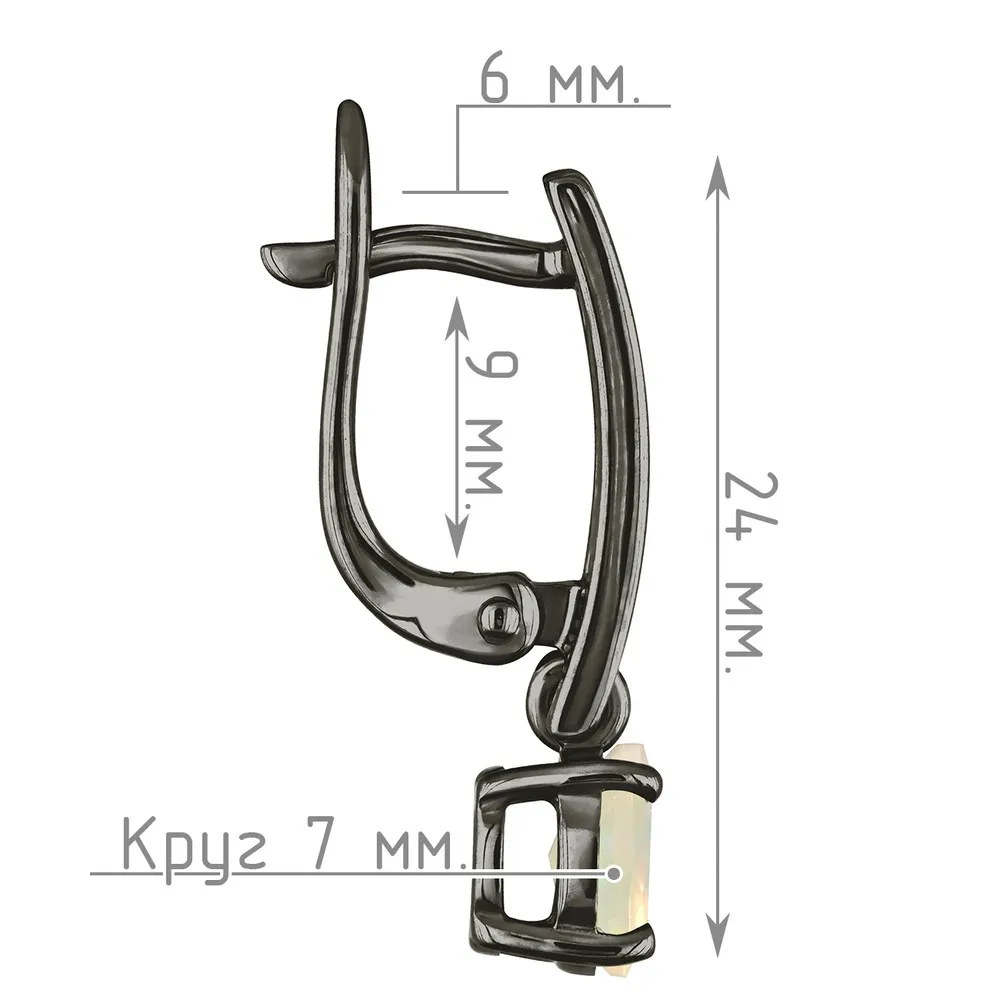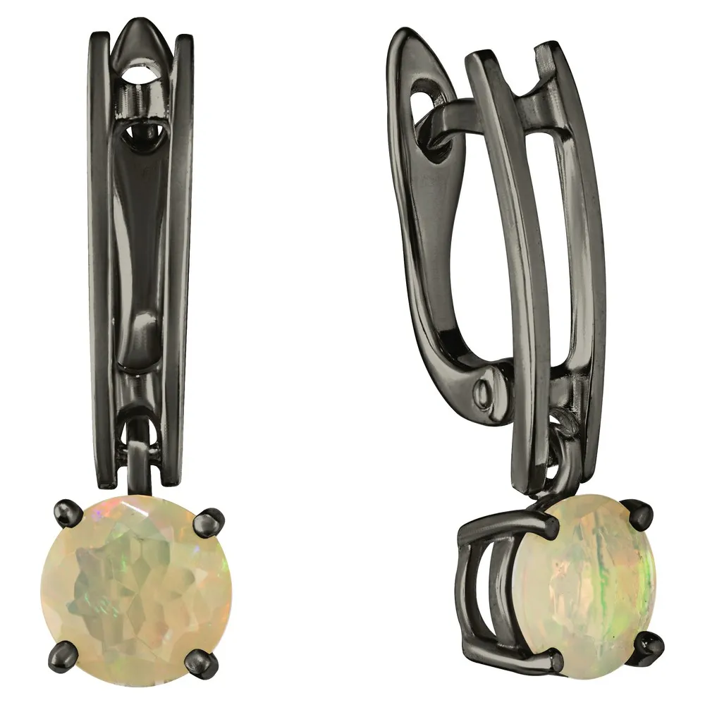 Серебряные серьги с натуральным опалом (2 класс) - коллекция Классик (мини) / Черный Родий.