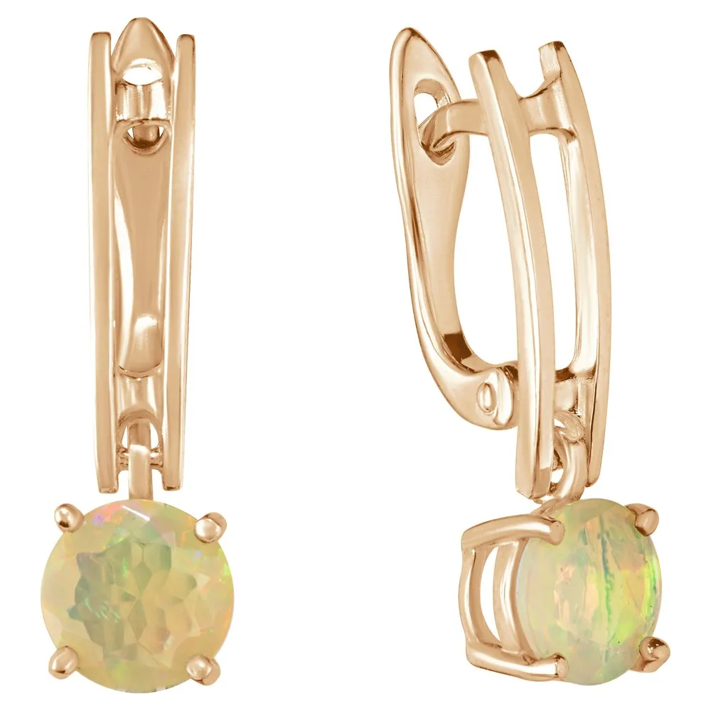 Серебряные серьги с натуральным опалом (2 класс) - коллекция Классик (мини) / Розовое Золото.