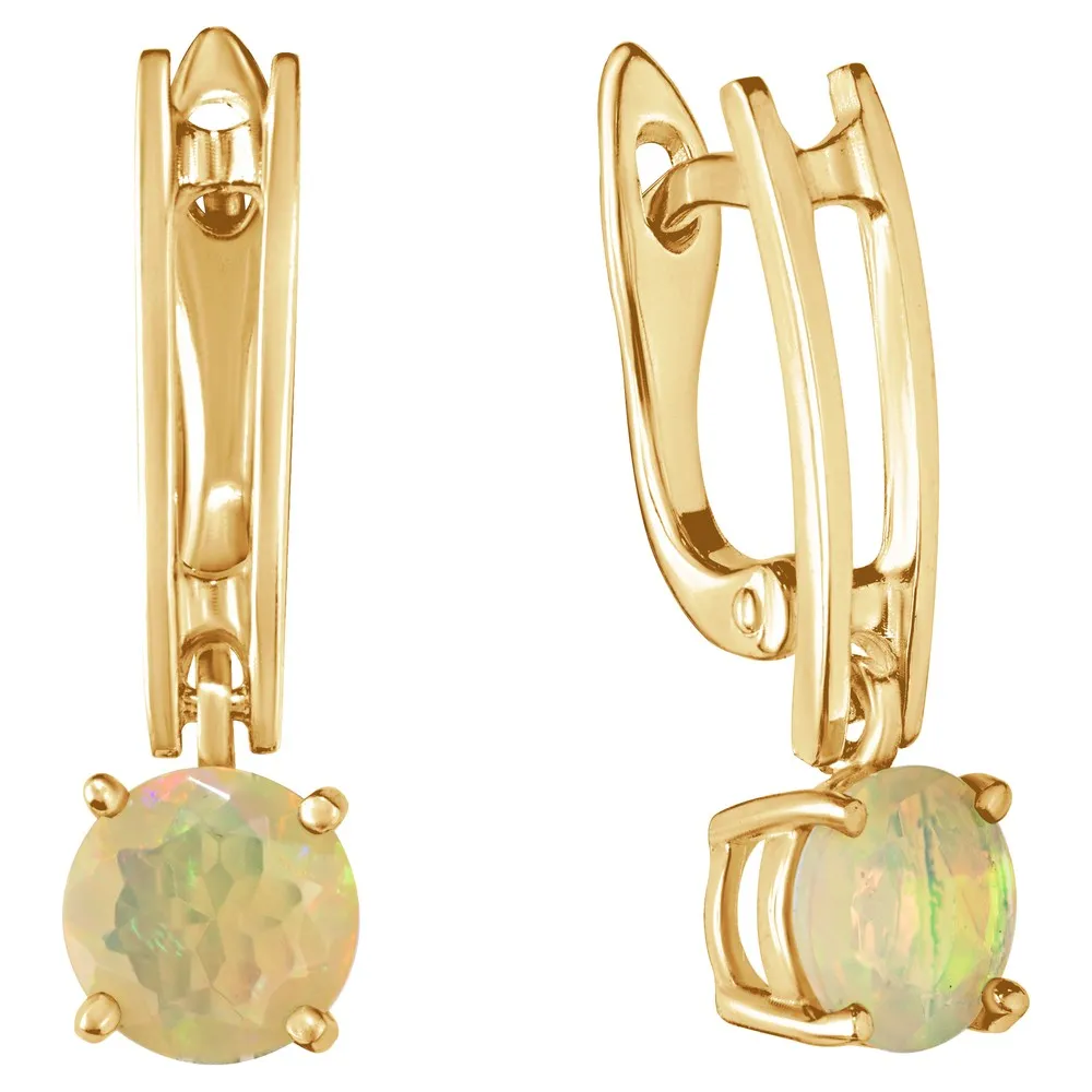 Серебряные серьги с натуральным опалом (2 класс) - коллекция Классик (мини) / Желтое Золото.