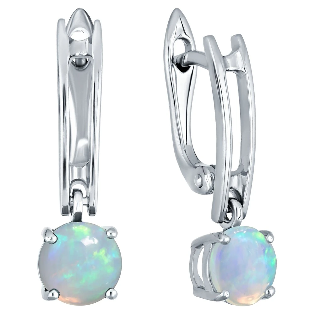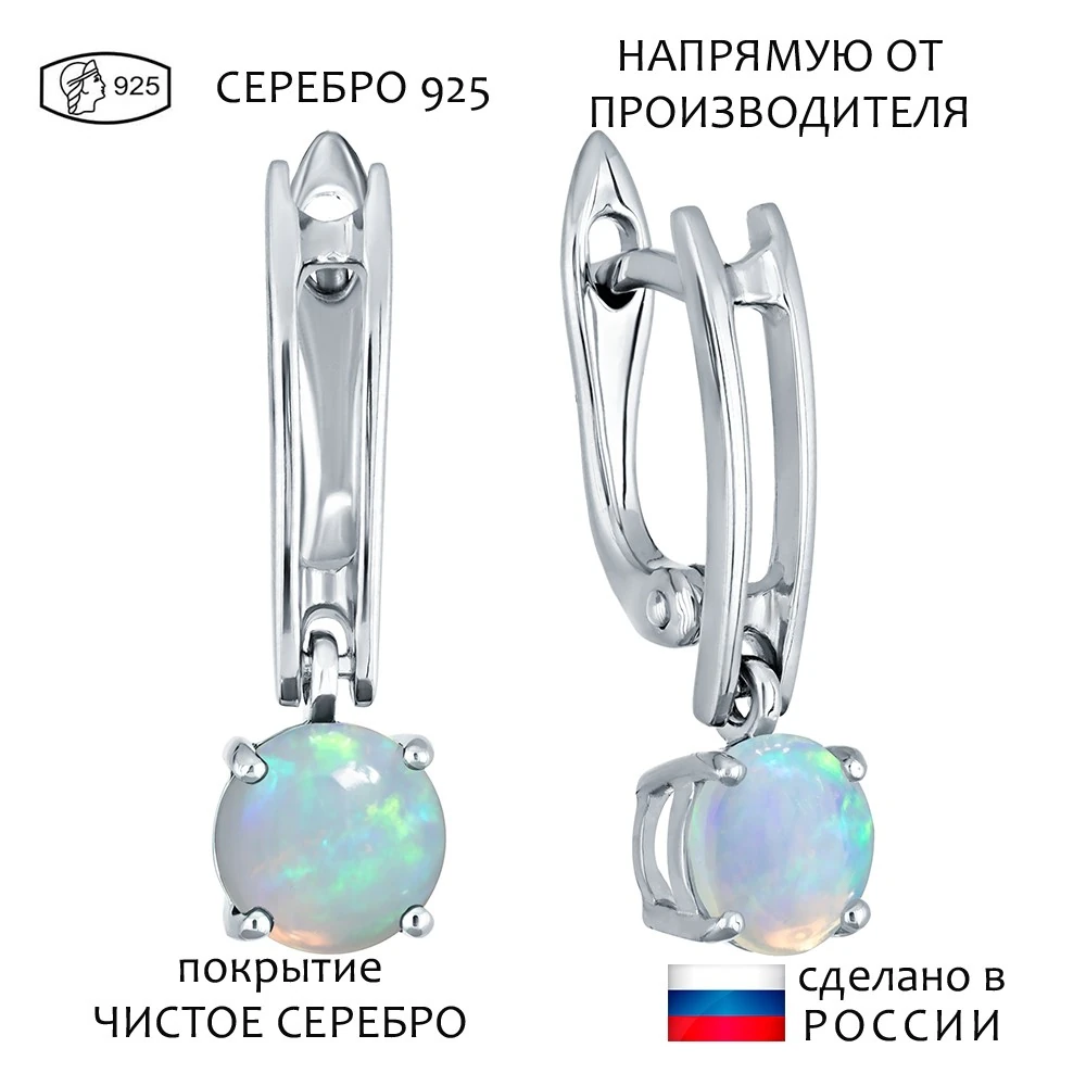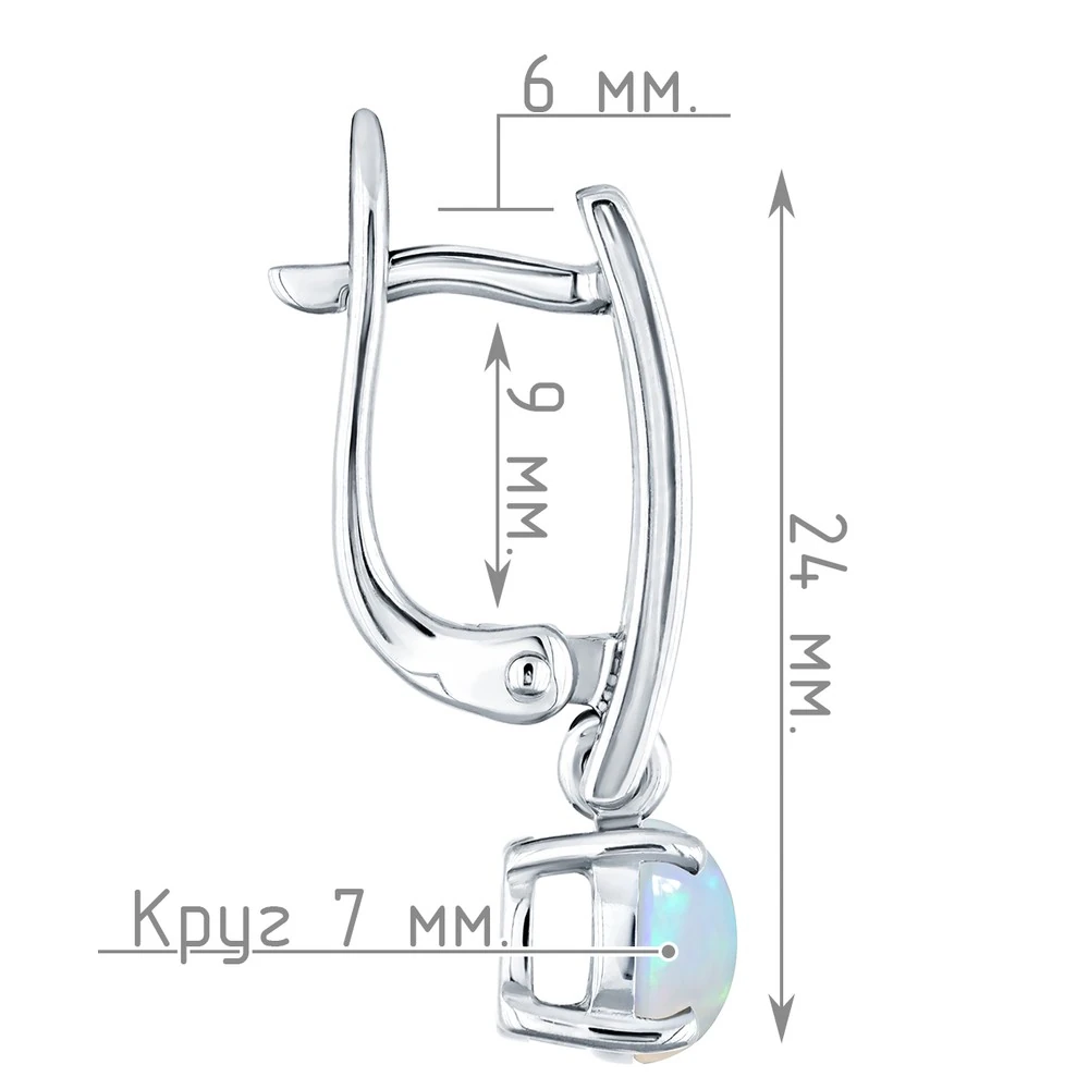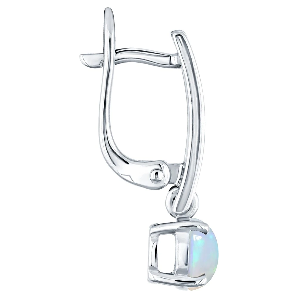 Серебряные серьги с натуральным опалом (каб.) - коллекция Классик (мини) / Чистое Серебро.
