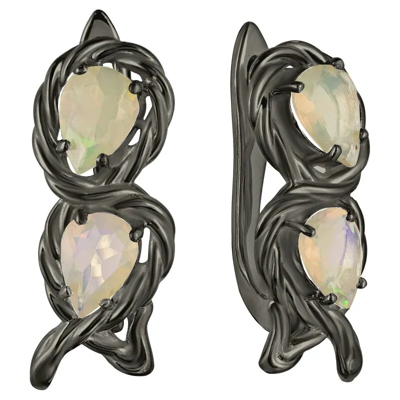 Серебряные серьги с натуральным опалом (2 класс) - коллекция Ривьера / Черный Родий.