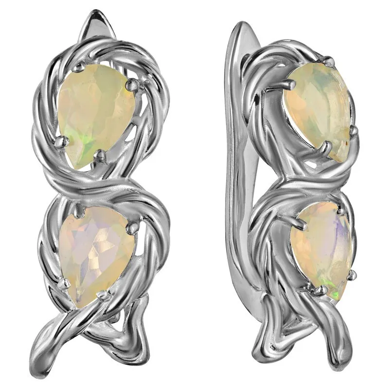 Серебряные серьги с натуральным опалом (2 класс) - коллекция Ривьера / Палладий.