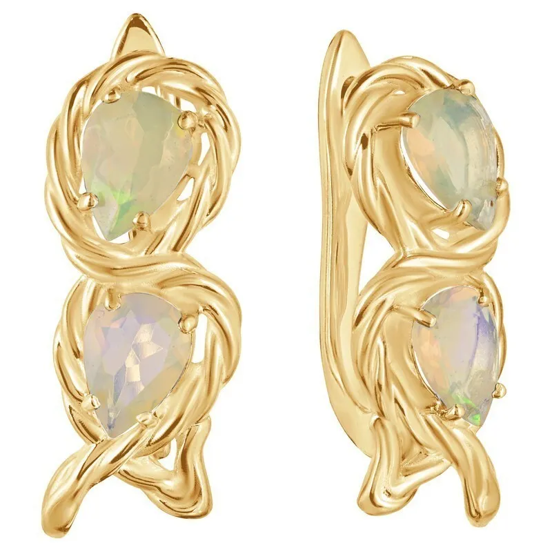 Серебряные серьги с натуральным опалом (2 класс) - коллекция Ривьера / Желтое Золото.