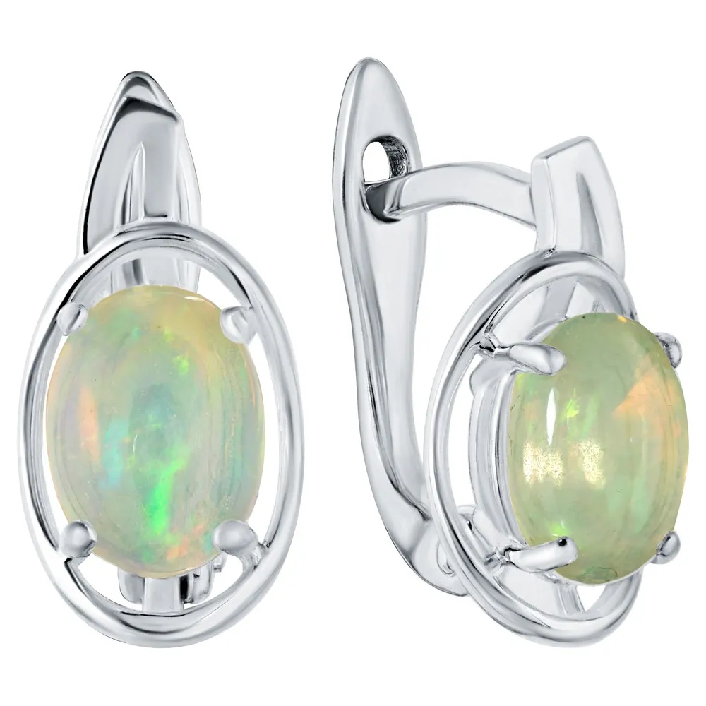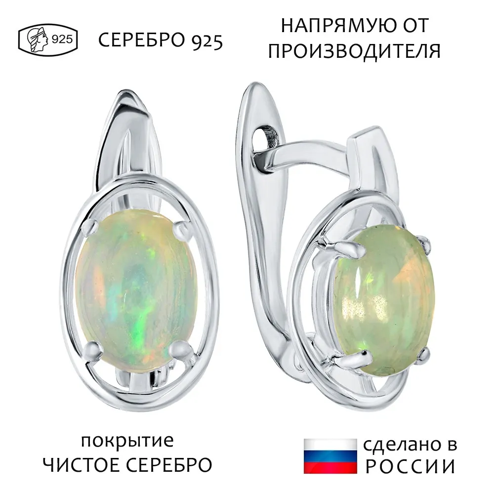 Серебряные серьги с натуральным опалом (каб.) - коллекция Фрейя / Чистое Серебро.