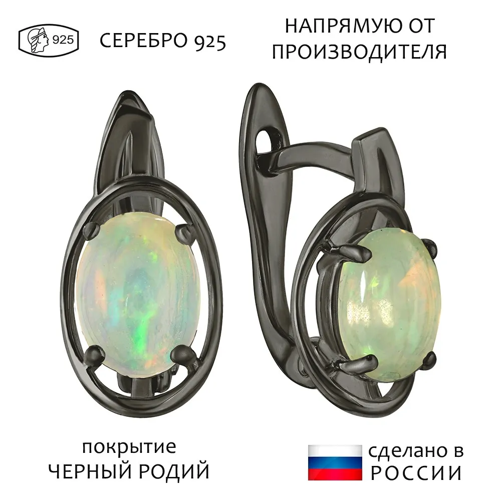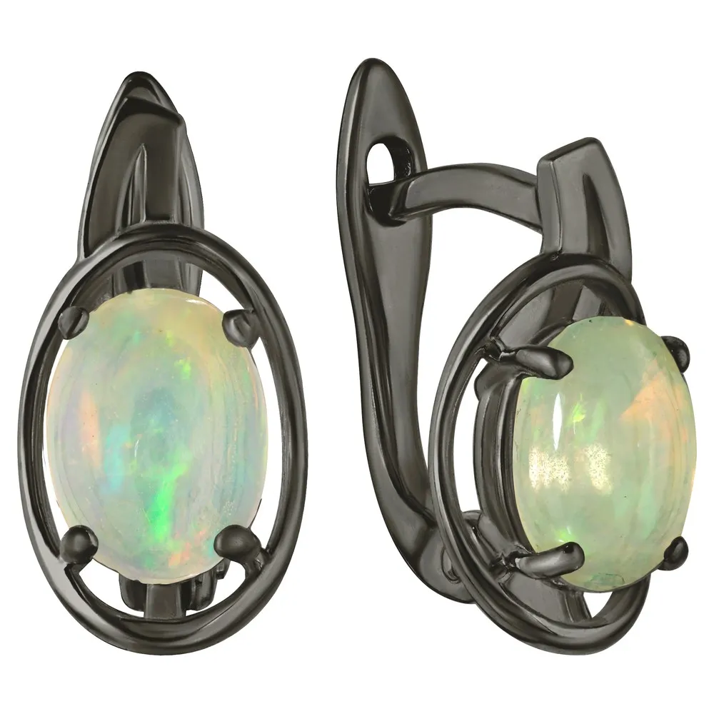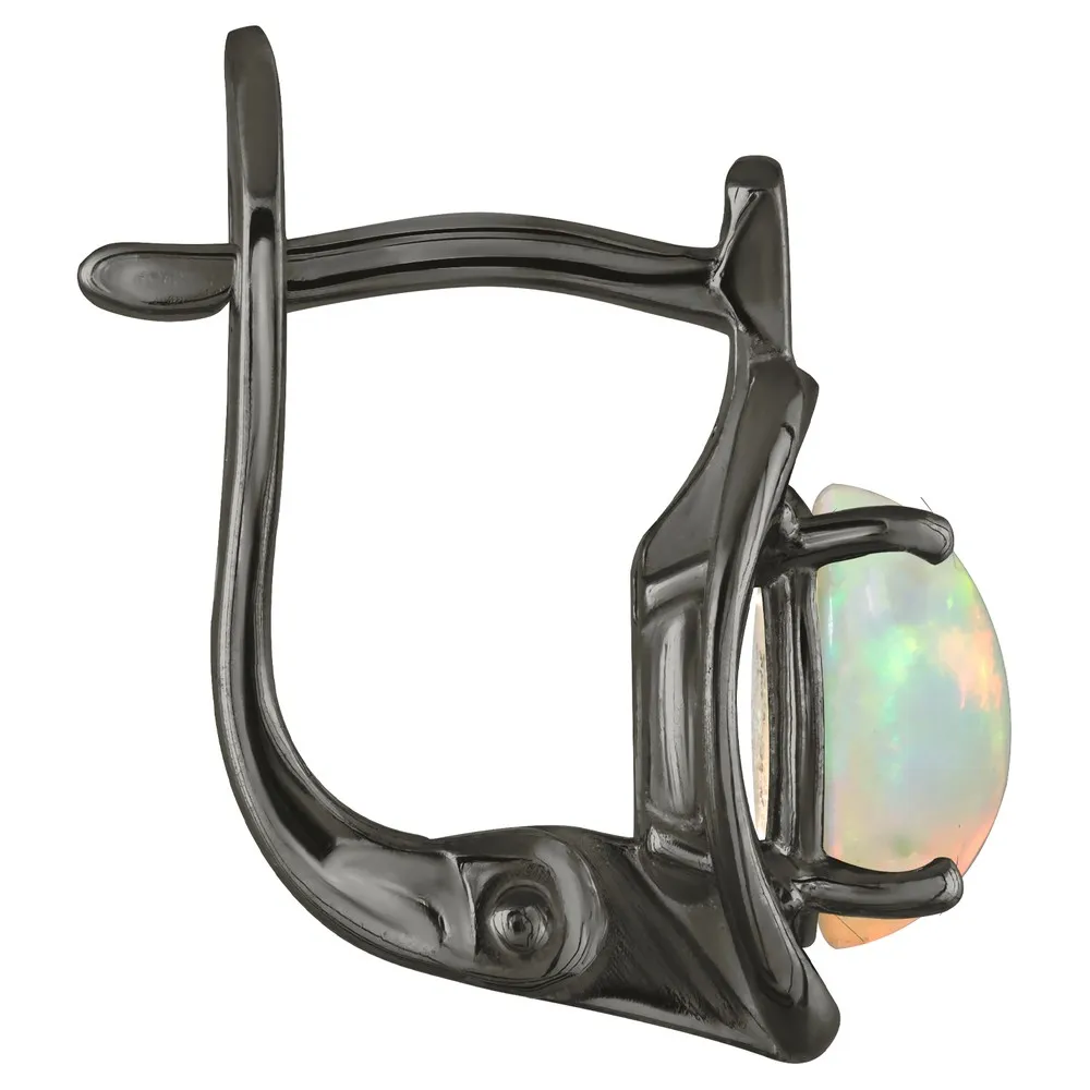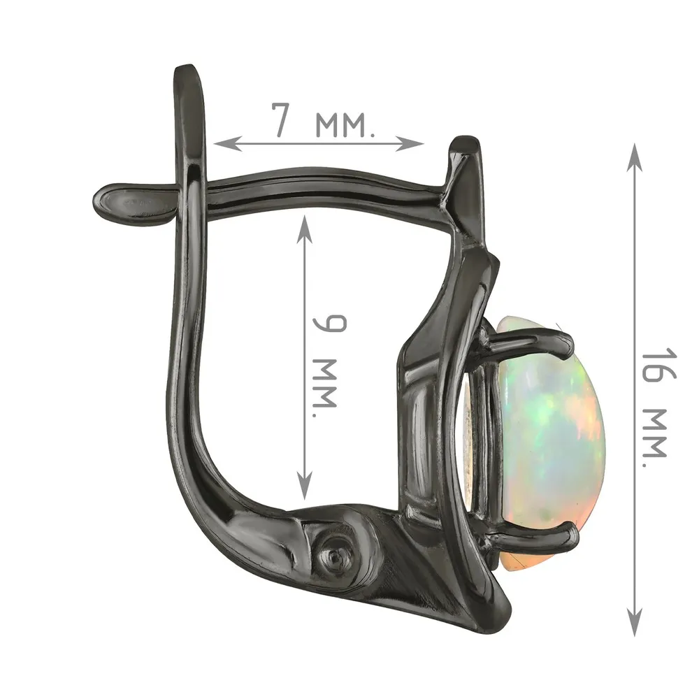Серебряные серьги с натуральным опалом (каб.) - коллекция Фрейя / Черный Родий.