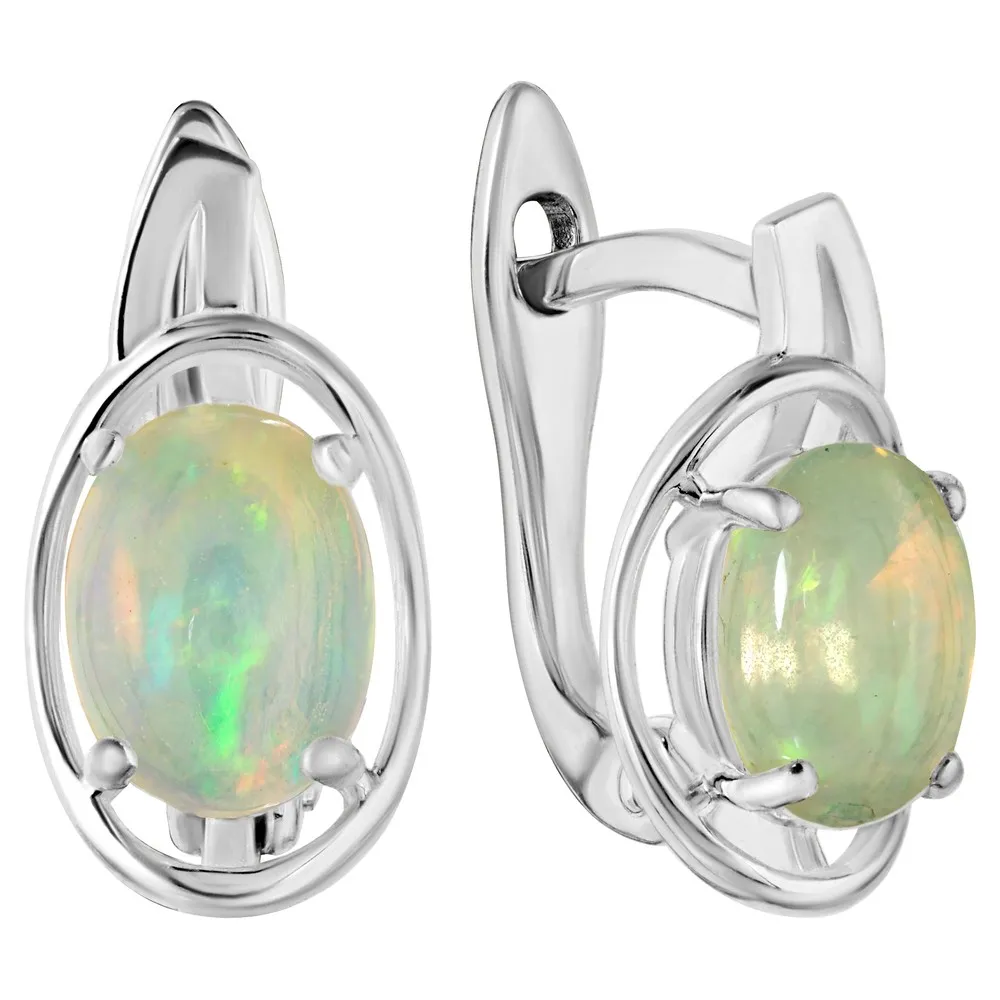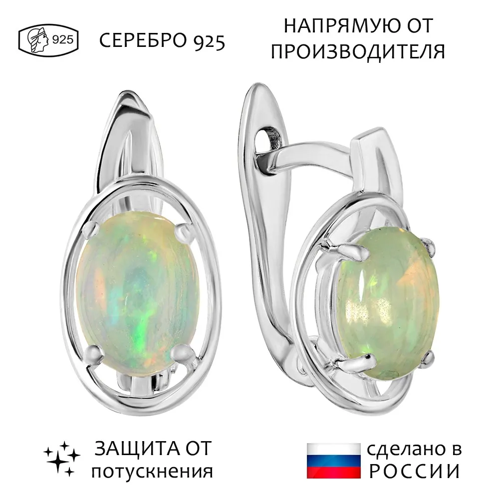 Серебряные серьги с натуральным опалом (каб.) - коллекция Фрейя / Без покрытия.