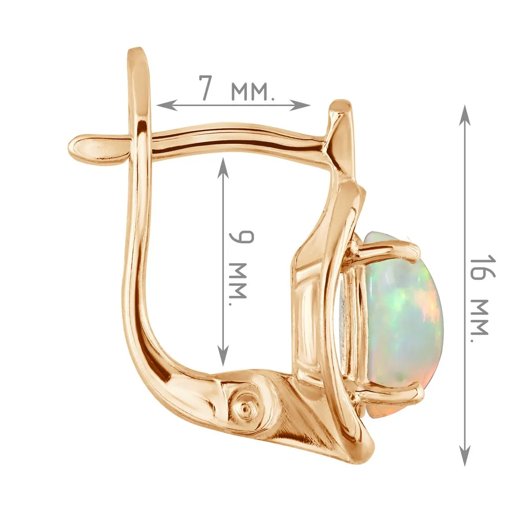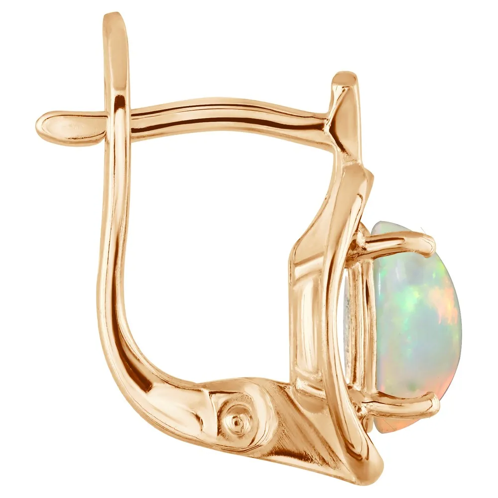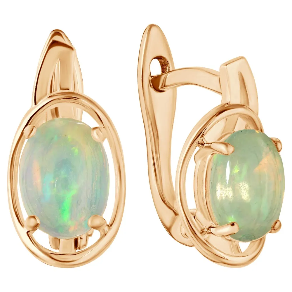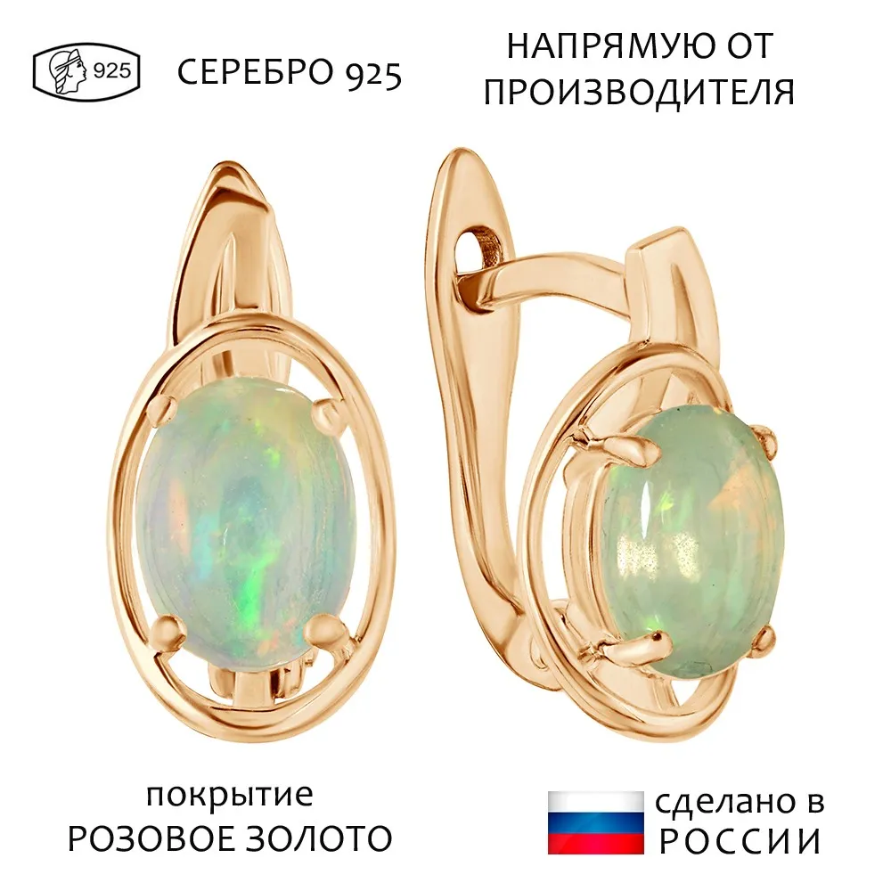 Серебряные серьги с натуральным опалом (каб.) - коллекция Фрейя / Розовое Золото.