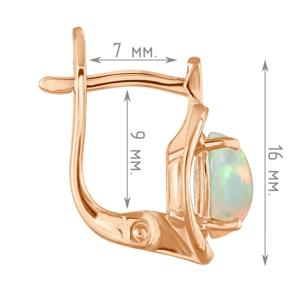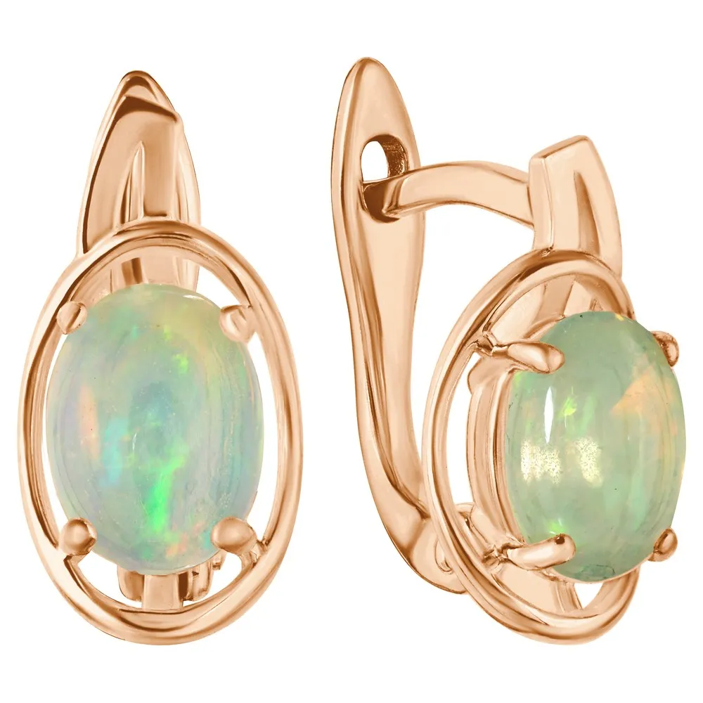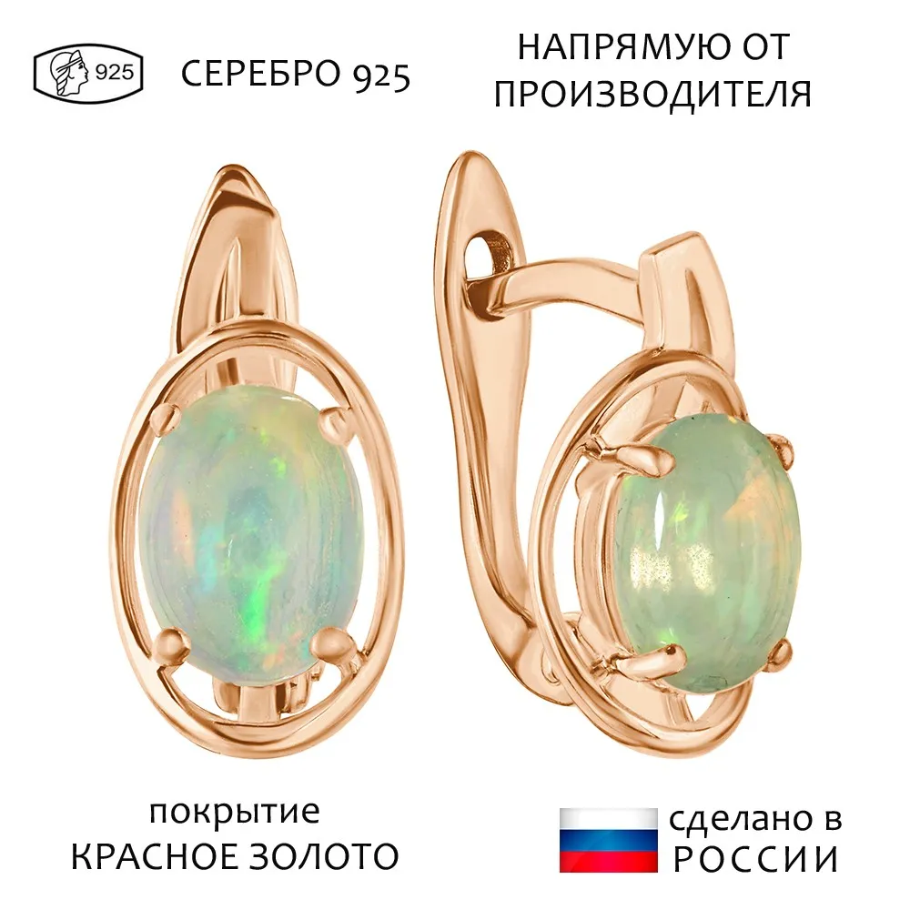 Серебряные серьги с натуральным опалом (каб.) - коллекция Фрейя / Красное золото.