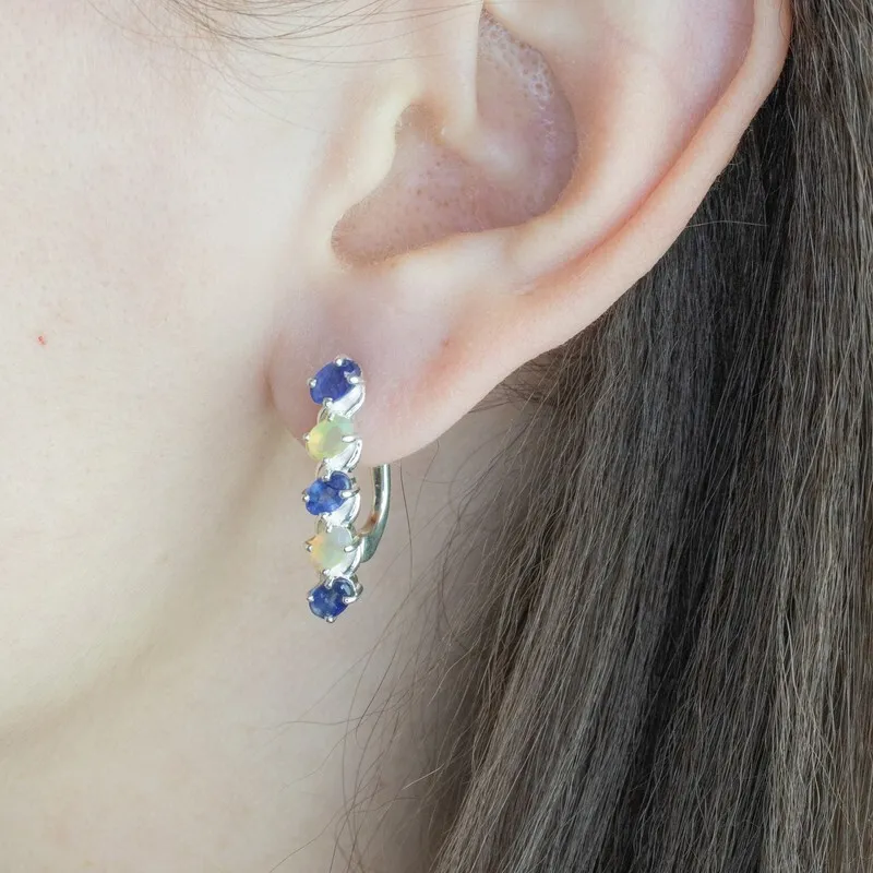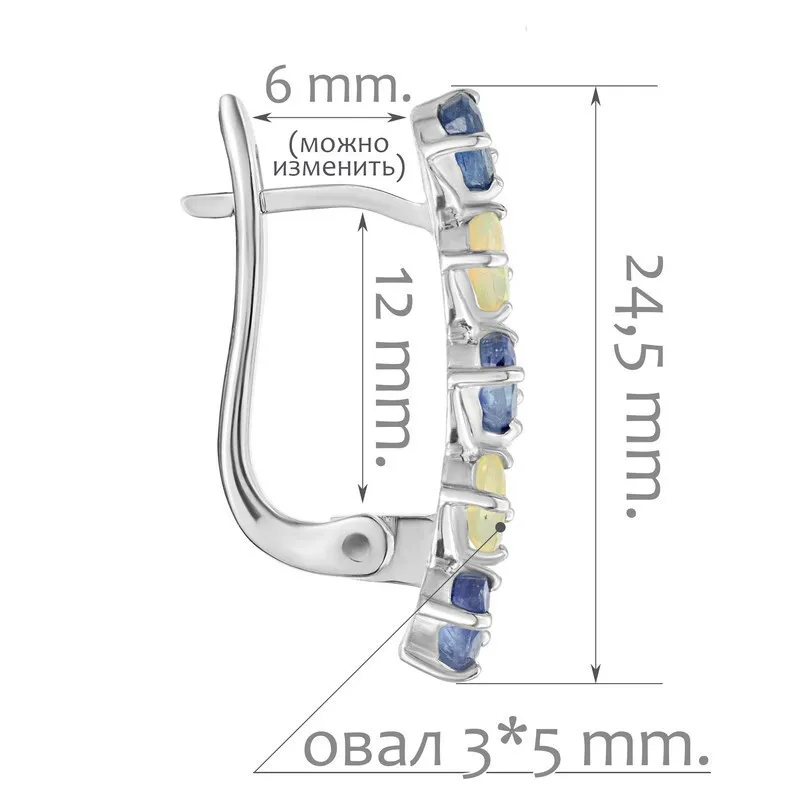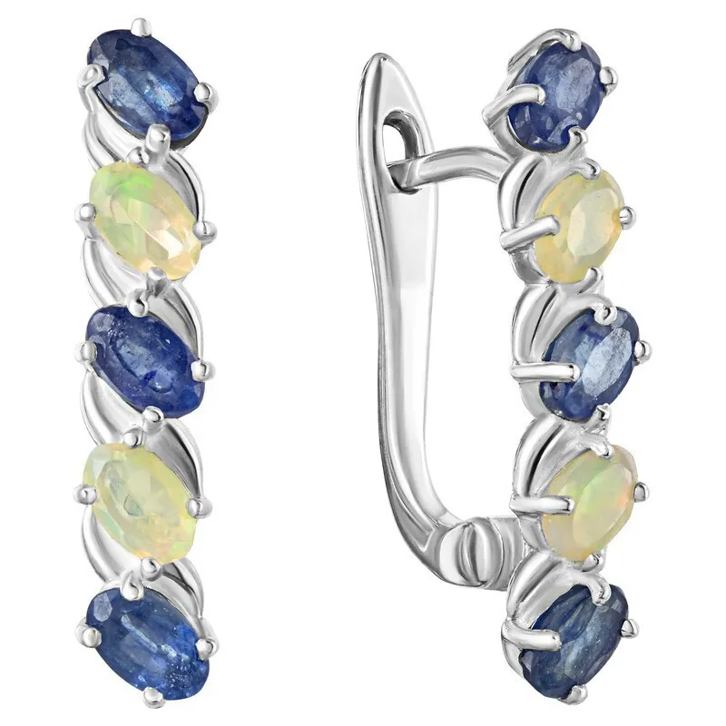 Серебряные серьги с натуральными камнями сапфир и опал - коллекция Колосок. Средний вес изделия с камнями 4.17 гр. Месторождения: Сапфир (Мадагаскар) и Опал (Эфиопия) Сапфир (Натуральный) овал 3*5 мм., средний вес: 0.39 карат. Опал (Натуральный) овал 3*5 мм., средний вес: 0.15 карат. Все изделия собственного производства. Гарантия 12 месяцев.Арт. 8033. Сапфир – это разновидность корунда. Камням различных оттенков приписывались разные свойства. Синие чаще всего ассоциировались с властью. Особенно ценятся звёздчатые сапфиры. Данный минерал часто именуют камнем небес и соотносят с божественным даром. Им дано усмирять человеческие страсти и укреплять волю.