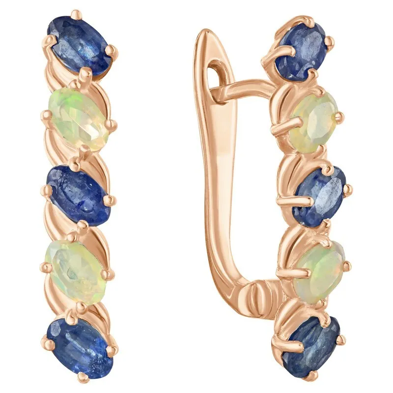 Серебряные серьги с натуральными камнями сапфир и опал - коллекция Колосок. Серебряные серьги 925 пробы с покрытием красное золото. Цвет покрытия соответствует швейцарскому цветовому стандарту NIHS -5N и цвету красного золота 585 в России. На последней фотографии мы разместили сравнительную фотографию 3 цвета золотого покрытия. Помимо предания золотого цвета Вашему изделию, тонкий слой золота защищает от окисления. Для более стойкого эффекта золочения и долговечности покрытия мы дополнительно наносим подслой палладия (Pd). Средний вес изделия с камнями 4.17 гр. Месторождения: Сапфир (Мадагаскар) и Опал (Эфиопия) Сапфир (Натуральный) овал 3*5 мм., средний вес: 0.39 карат. Опал (Натуральный) овал 3*5 мм., средний вес: 0.15 карат. Все изделия собственного производства. Гарантия 12 месяцев.Арт. 8033. Сапфир – это разновидность корунда. Камням различных оттенков приписывались разные свойства. Синие чаще всего ассоциировались с властью. Особенно ценятся звёздчатые сапфиры. Данный минерал часто именуют камнем небес и соотносят с божественным даром. Им дано усмирять человеческие страсти и укреплять волю.