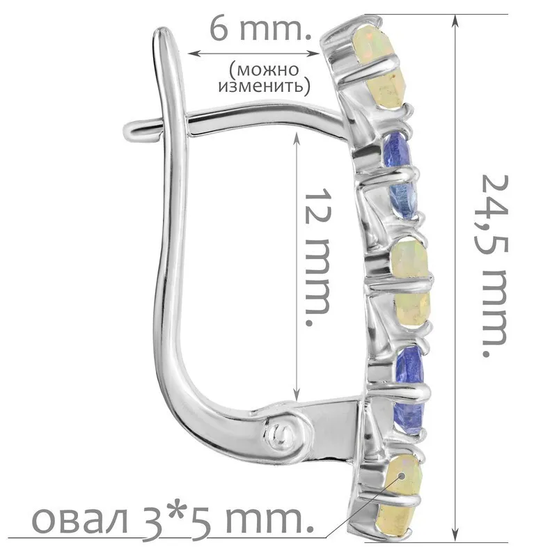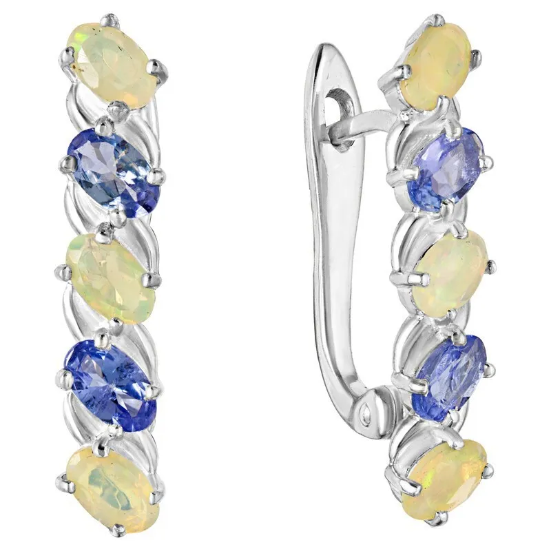 Серебряные серьги с натуральными камнями танзанит и опал - коллекция Колосок / покрытие Чистое Серебро