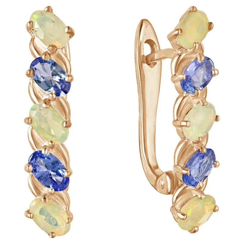 Серебряные серьги с натуральными камнями танзанит и опал - коллекция Колосок. Серебряные серьги 925 пробы с покрытием розовое золото. Цвет покрытия соответствует швейцарскому цветовому стандарту NIHS -4N и цвету розового золота 585 в России. На последней фотографии мы разместили сравнительную фотографию 3 цвета золотого покрытия. Помимо предания золотого цвета Вашему изделию, тонкий слой золота защищает от окисления. Для более стойкого эффекта золочения и долговечности покрытия мы дополнительно наносим подслой палладия (Pd). Средний вес изделия с камнями 3.91 гр. Месторождения: Танзанит (провинция Аруша, Танзания) и Опал (Эфиопия) Танзанит Опал (Натуральный) овал 3*5 мм., средний вес: 0.24 карат. и Опал (Натуральный) овал 3*5 мм., средний вес: 0.15 карат. Все изделия собственного производства. Гарантия 12 месяцев.Арт. 8168. Опал – это благородный камень, известный ещё с древности. Ему приписывали разнообразные магические свойства. Окраска опала многовариантна, выделяют более ста типов. Он помогал справиться с порчей и сглазом, защищал от негативной энергетики, способствовал излечению мигреней. Как талисман для ребенка, становился защитником от дурных сил и заболеваний.