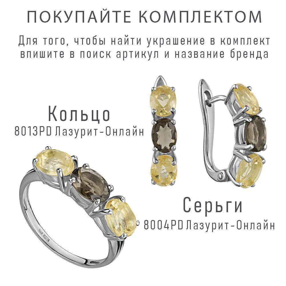 Серебряные серьги с натуральными камнями раухтопаз и цитрин - коллекция Муза. Средний вес изделия с камнями 4.64гр. Месторождение(я): Цитрин (Урал, Россия) и Раухтопаз (Ильменские горы, Россия). Раухтопаз (Натуральный) овал 5*7 мм., средний вес: 0.75 карат. Цитрин (Натуральный) овал 5*7 мм., средний вес: 0.90 карат. Все изделия собственного производства. Гарантия 12 месяцев.Арт. 8004. Раухтопаз – это разновидность кварца. Ранее он использовался в ювелирных украшениях, при вышивке картин, для магических ритуалов. Его влияние на владельца сразу становится заметно — человек успокаивается и становится рассудительным, легче выходит из депрессивных состояний. Часто использовался в приворотах, заговорах или для связи с миром духов.