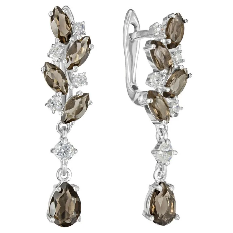 Серебряные серьги с натуральным раухтопазом - коллекция Росинка / Без покрытия