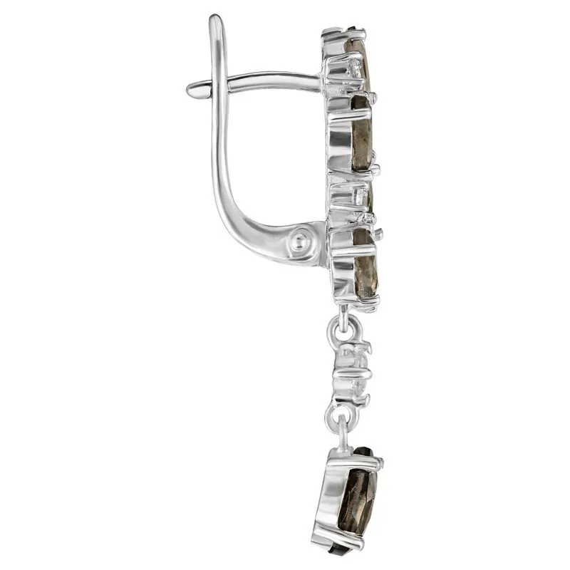 Серебряные серьги с натуральным раухтопазом - коллекция Росинка / покрытие Белый Родий