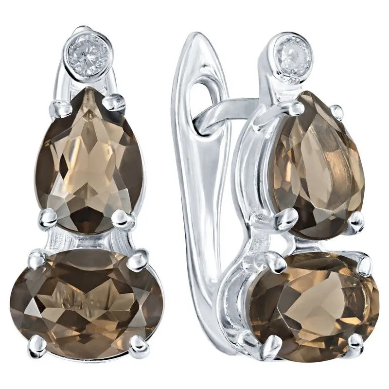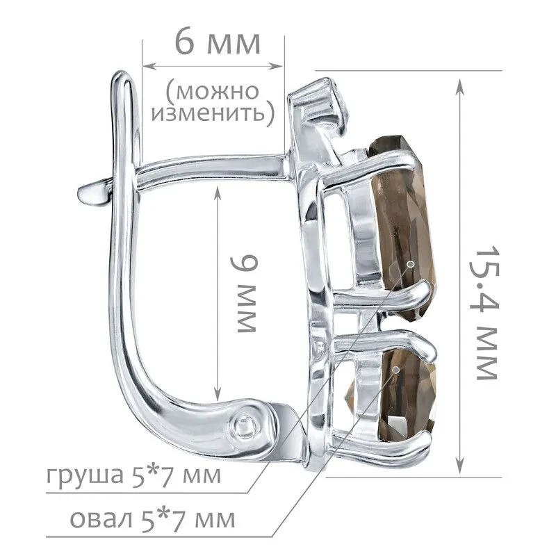Серебряные серьги с натуральным раухтопазом - коллекция Сансара / покрытие Чистое Серебро.Средний вес украшения с камнями 3.27 гр.Месторождение(я): Раухтопаз (Дымчатый кварц) (м-ие Додо ХМАО, Россия).Ювелирные вставки:Раухтопаз (Натуральный) овал 5*7 мм., средний вес: 0.75 карат.Раухтопаз (Натуральный) груша 5*7 мм., средний вес: 0.63 карат.Белый Нанокристалл круг 2 мм., средний вес: 0.06 карат.Все изделия собственного производства и имеют гарантию 12 месяцев. Арт. 8700AG . Раухтопаз – это разновидность кварца. Ранее он использовался в ювелирных украшениях, при вышивке картин, для магических ритуалов. Его влияние на владельца сразу становится заметно — человек успокаивается и становится рассудительным, легче выходит из депрессивных состояний. Часто использовался в приворотах, заговорах или для связи с миром духов.
