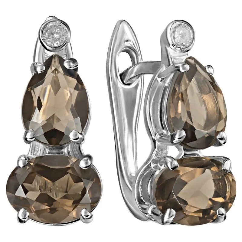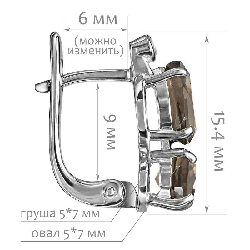 Серебряные серьги с натуральным раухтопазом - коллекция Сансара / покрытие Палладий.Средний вес украшения с камнями 3.26 гр.Месторождение(я): Раухтопаз (Дымчатый кварц) (м-ие Додо ХМАО, Россия).Ювелирные вставки:Раухтопаз (Натуральный) овал 5*7 мм., средний вес: 0.75 карат.Раухтопаз (Натуральный) груша 5*7 мм., средний вес: 0.63 карат.Белый Нанокристалл круг 2 мм., средний вес: 0.06 карат.Все изделия собственного производства и имеют гарантию 12 месяцев. Арт. 8700PD . Раухтопаз – это разновидность кварца. Ранее он использовался в ювелирных украшениях, при вышивке картин, для магических ритуалов. Его влияние на владельца сразу становится заметно — человек успокаивается и становится рассудительным, легче выходит из депрессивных состояний. Часто использовался в приворотах, заговорах или для связи с миром духов.