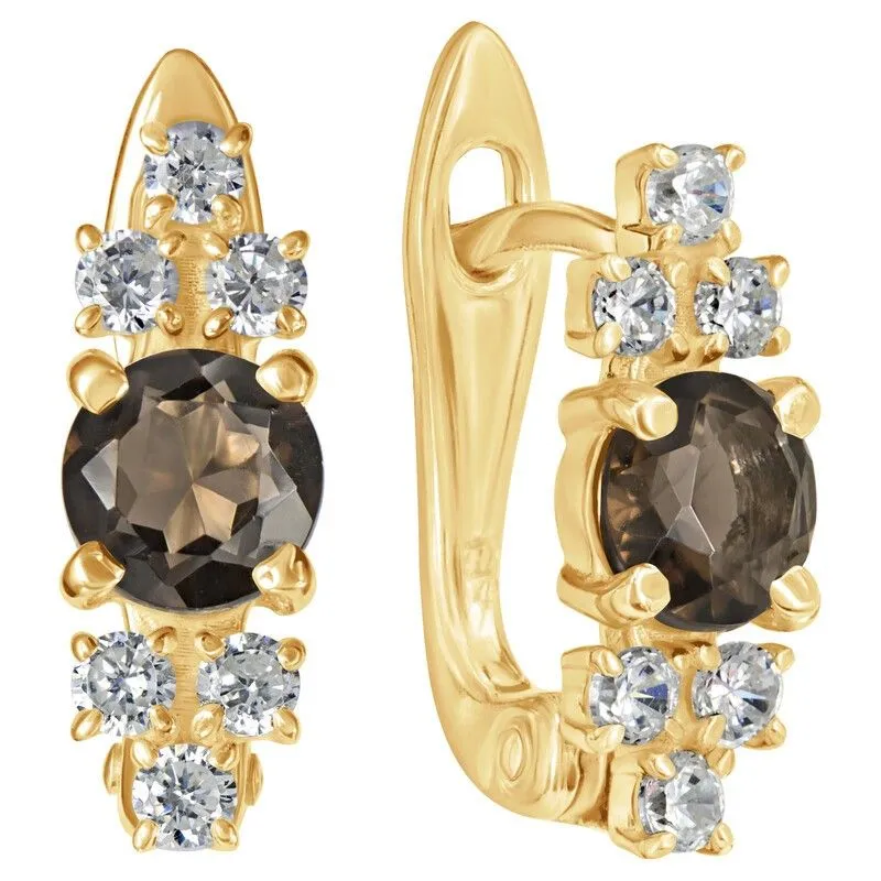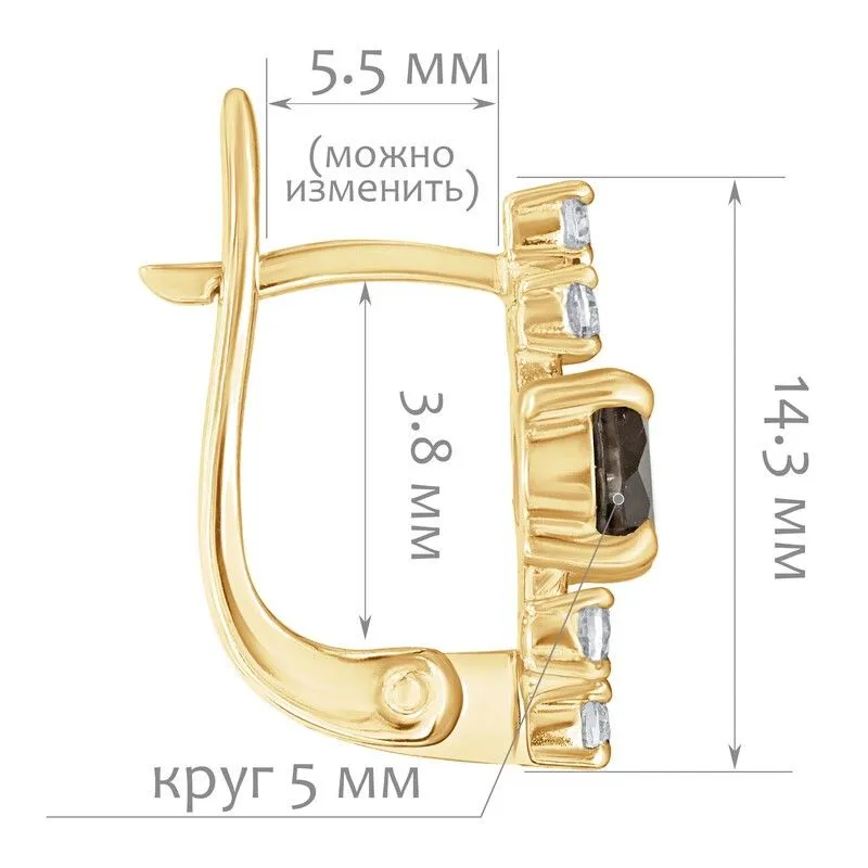 Серебряные серьги с натуральным раухтопазом - коллекция Нова / покрытие Желтое Золото.Средний вес украшения с камнями 2.52 гр.Месторождение(я): Раухтопаз (Дымчатый кварц) (м-ие Додо ХМАО, Россия).Ювелирные вставки:Раухтопаз (Натуральный) круг 5 мм., средний вес: 0.41 карат.Белый Нанокристалл круг 2 мм., средний вес: 0.06 карат.Все изделия собственного производства и имеют гарантию 12 месяцев. Арт. 8714YG . Раухтопаз – это разновидность кварца. Ранее он использовался в ювелирных украшениях, при вышивке картин, для магических ритуалов. Его влияние на владельца сразу становится заметно — человек успокаивается и становится рассудительным, легче выходит из депрессивных состояний. Часто использовался в приворотах, заговорах или для связи с миром духов.