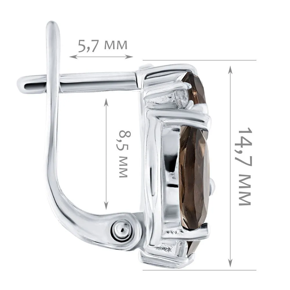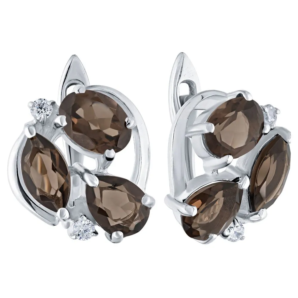 Серебряные серьги с натуральным раухтопазом - коллекция Фортуна / покрытие Чистое Серебро. Средний вес украшения с камнями 5.69 гр. Месторождение: Раухтопаз (Дымчатый кварц) (м-ие Додо ХМАО, Россия) Ювелирные вставки: Раухтопаз (Натуральный) груша 5*7 мм., средний вес: 0.63 карат. Раухтопаз (Натуральный) овал 5*7 мм., средний вес: 0.75 карат. (Натуральный) круг 2 мм., средний вес: 0.06 карат. Все изделия собственного производства и имеют гарантию 12 месяцев. Арт. 8775AG . Раухтопаз – это разновидность кварца. Ранее он использовался в ювелирных украшениях, при вышивке картин, для магических ритуалов. Его влияние на владельца сразу становится заметно — человек успокаивается и становится рассудительным, легче выходит из депрессивных состояний. Часто использовался в приворотах, заговорах или для связи с миром духов.