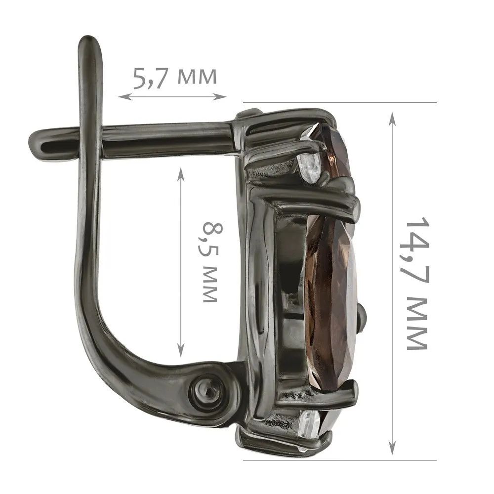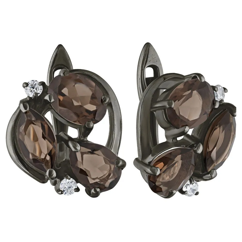 Серебряные серьги с натуральным раухтопазом - коллекция Фортуна / покрытие Черный Родий. Средний вес украшения с камнями 5.73 гр. Месторождение: Раухтопаз (Дымчатый кварц) (м-ие Додо ХМАО, Россия) Ювелирные вставки: Раухтопаз (Натуральный) груша 5*7 мм., средний вес: 0.63 карат. Раухтопаз (Натуральный) овал 5*7 мм., средний вес: 0.75 карат. (Натуральный) круг 2 мм., средний вес: 0.06 карат. Все изделия собственного производства и имеют гарантию 12 месяцев. Арт. 8775BR . Раухтопаз – это разновидность кварца. Ранее он использовался в ювелирных украшениях, при вышивке картин, для магических ритуалов. Его влияние на владельца сразу становится заметно — человек успокаивается и становится рассудительным, легче выходит из депрессивных состояний. Часто использовался в приворотах, заговорах или для связи с миром духов.