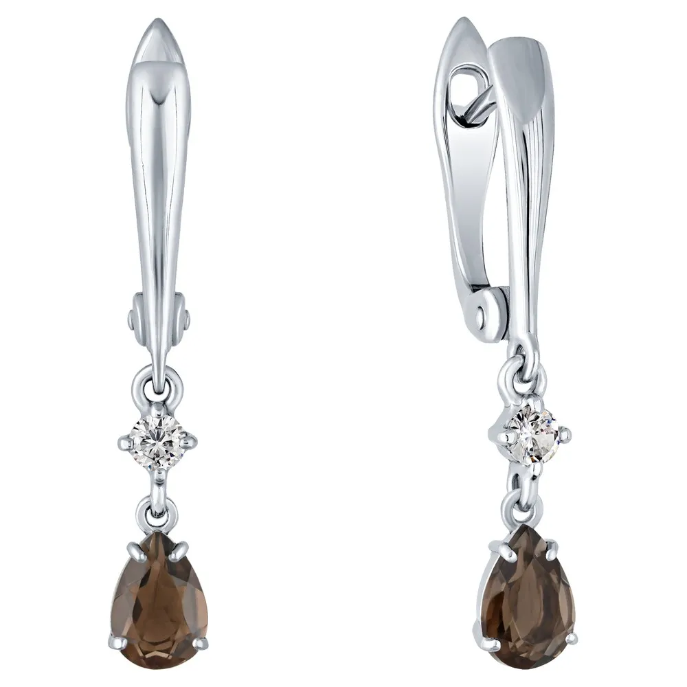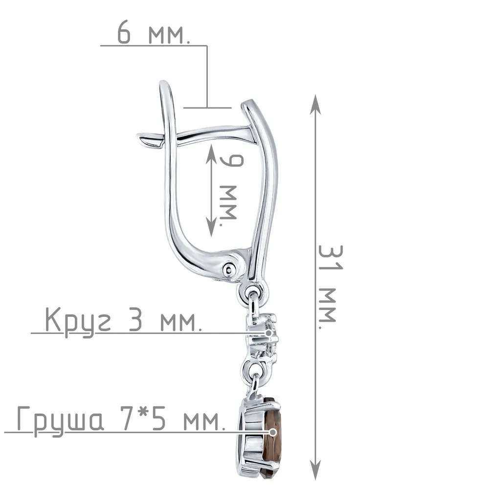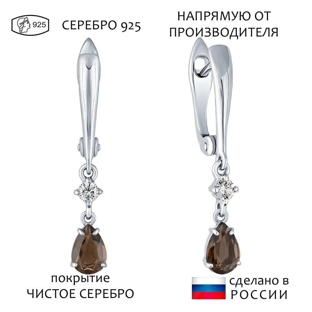 Серебряные серьги с натуральным раухтопазом - коллекция Алсу (малая) / Чистое Серебро.