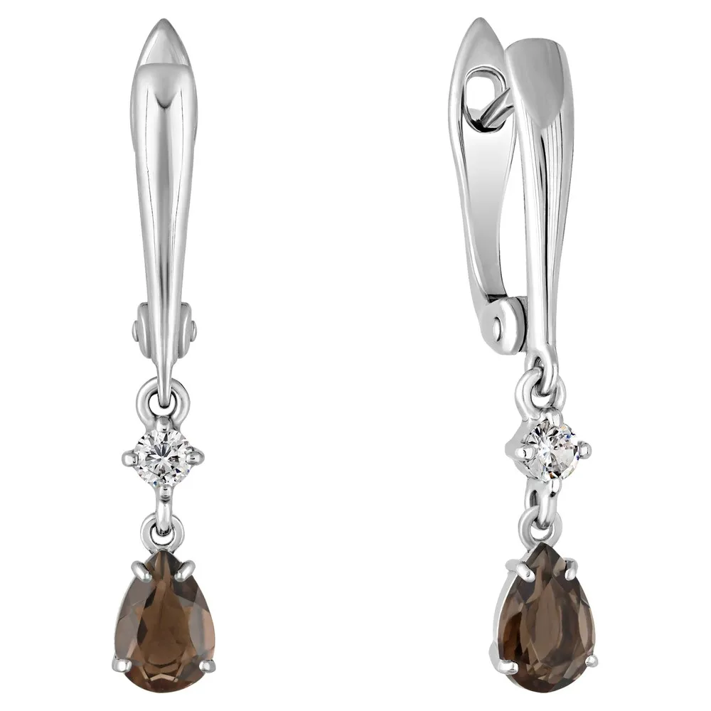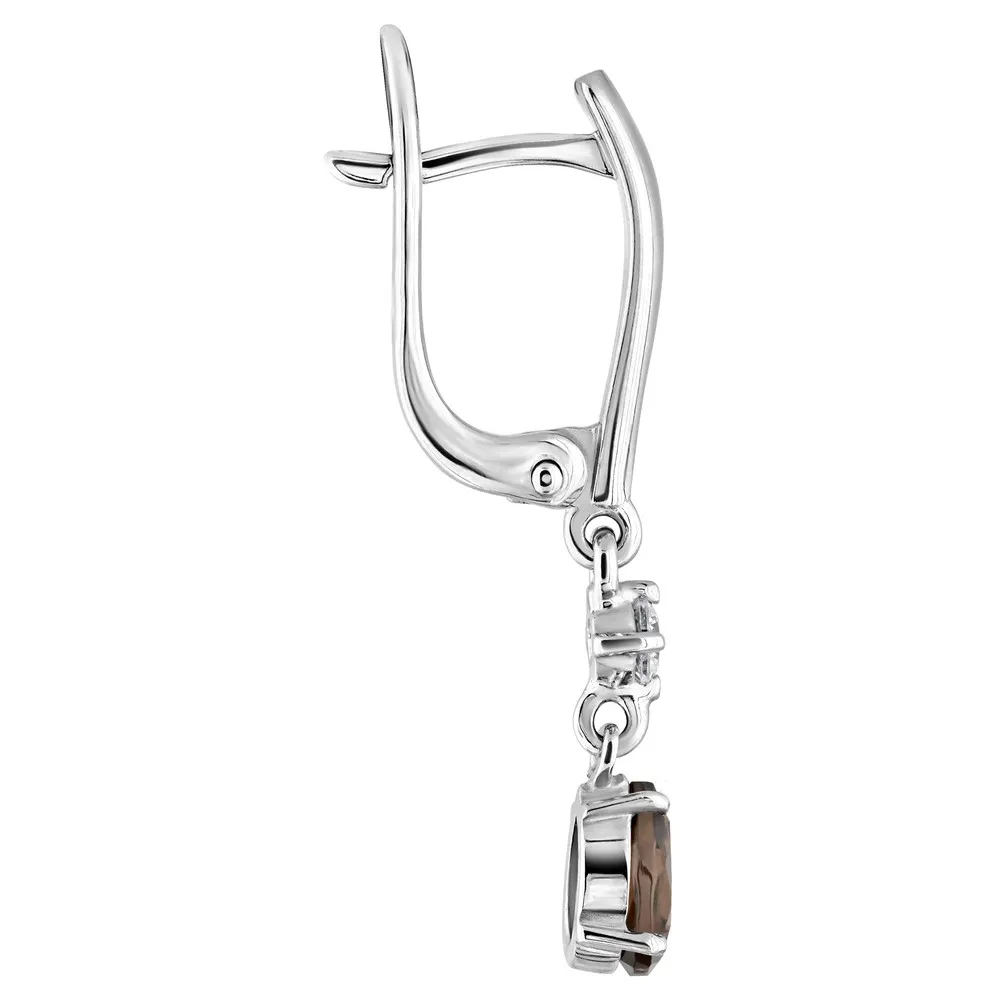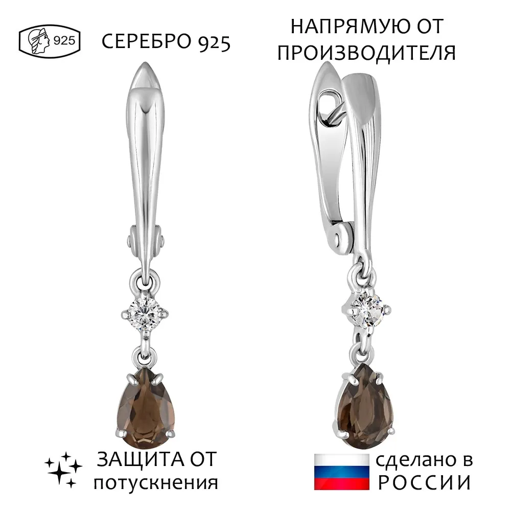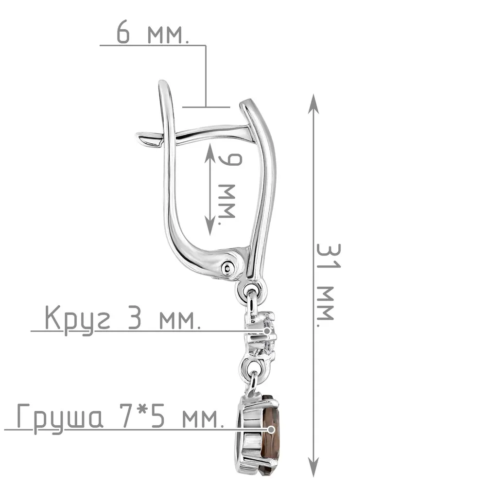 Серебряные серьги с натуральным раухтопазом - коллекция Алсу (малая) / Без покрытия.
