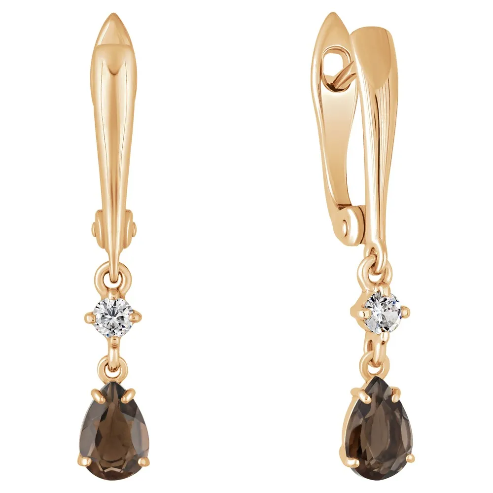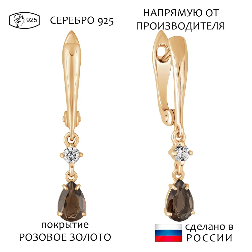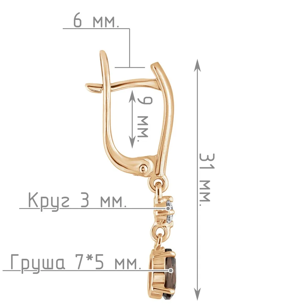 Серебряные серьги с натуральным раухтопазом - коллекция Алсу (малая) / Розовое Золото.
