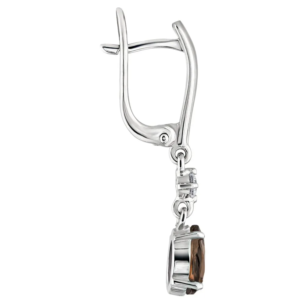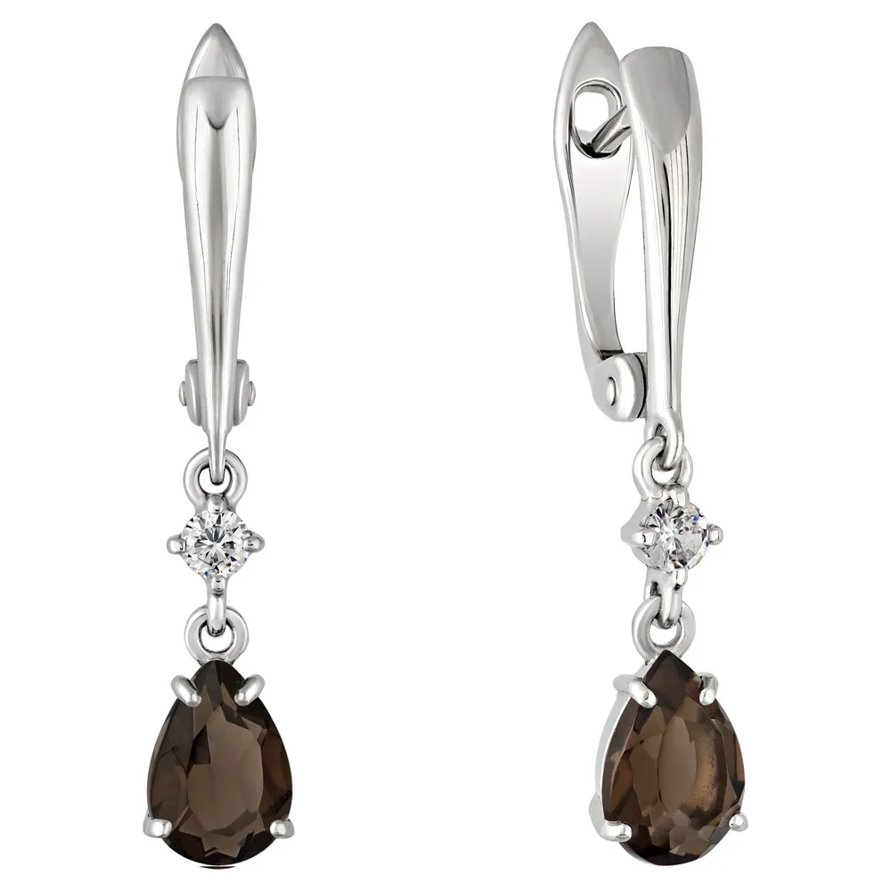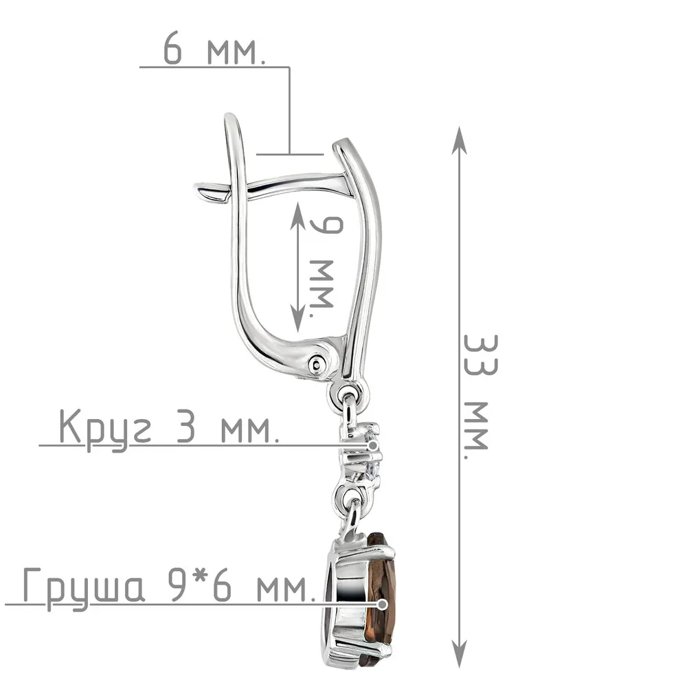 Серебряные серьги с натуральным раухтопазом - коллекция Алсу (большая) / Без покрытия.