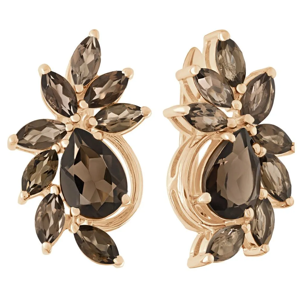 Серебряные серьги "Элегия" с натуральным раухтопазом (дымчатый кварц), покрытие Розовое Золото. Средний вес украшения с камнями 6,99 гр. Месторождение(я) камней: Раухтопаз (Дымчатый кварц) (м-ние Додо ХМАО, Россия). Раухтопаз (Натуральный) груша: 7*10 мм., средний вес 1,85 карат. Раухтопаз (Натуральный) маркиз: 3*6 мм., средний вес 0,24 карат. Размер лицевой части: 15*24 мм. Все изделия собственного производства и имеют гарантию 12 месяцев. Арт. 6660PG . Раухтопаз – это разновидность кварца. Ранее он использовался в ювелирных украшениях, при вышивке картин, для магических ритуалов. Его влияние на владельца сразу становится заметно — человек успокаивается и становится рассудительным, легче выходит из депрессивных состояний. Часто использовался в приворотах, заговорах или для связи с миром духов.