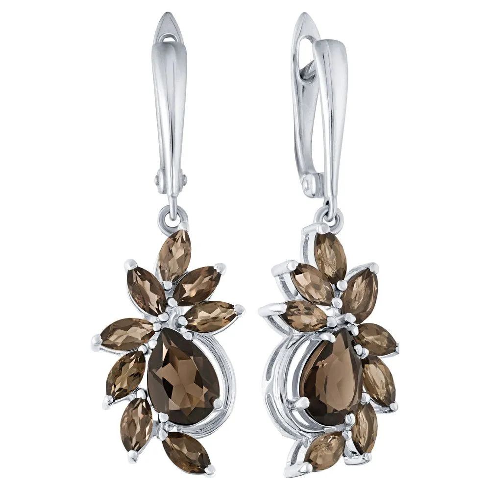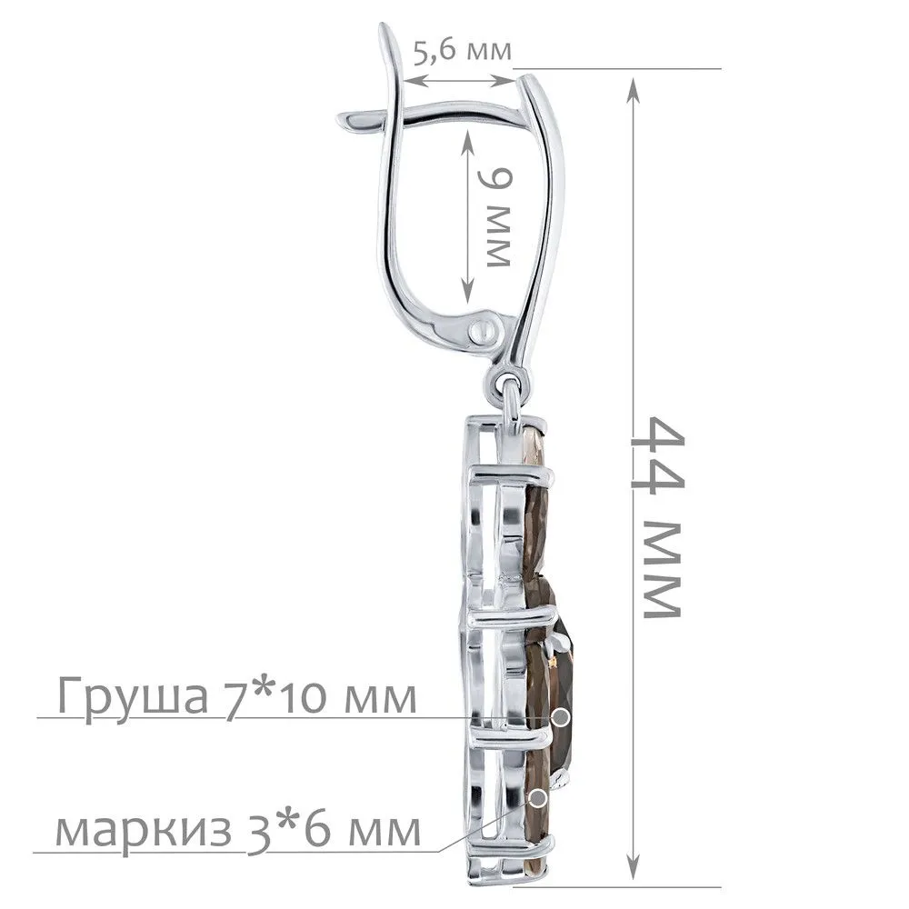 Серебряные серьги "Элегия" с натуральным раухтопазом (дымчатый кварц), покрытие Чистое Серебро. Средний вес украшения с камнями 7,53 гр. Месторождение(я) камней: Раухтопаз (Дымчатый кварц) (м-ние Додо ХМАО, Россия). Раухтопаз (Натуральный) груша: 7*10 мм., средний вес 1,85 карат. Раухтопаз (Натуральный) маркиз: 3*6 мм., средний вес 0,24 карат. Размер лицевой части: 15*43 мм. Все изделия собственного производства и имеют гарантию 12 месяцев. Арт. 6661AG . Раухтопаз – это разновидность кварца. Ранее он использовался в ювелирных украшениях, при вышивке картин, для магических ритуалов. Его влияние на владельца сразу становится заметно — человек успокаивается и становится рассудительным, легче выходит из депрессивных состояний. Часто использовался в приворотах, заговорах или для связи с миром духов.