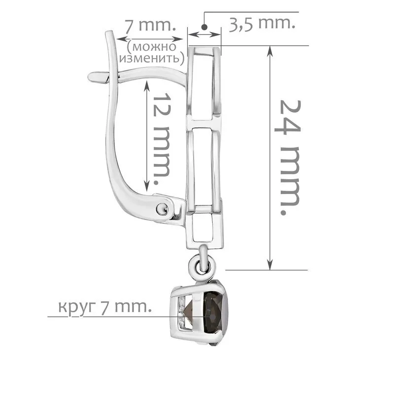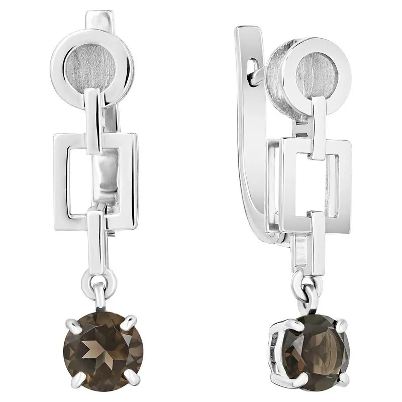 Серебряные серьги "Классик" с натуральным раухтопазом (дымчатый кварц). Средний вес изделия с камнями 6,27 гр. Месторождение(я) камней: Раухтопаз (Дымчатый кварц) (м-ние Додо ХМАО, Россия). Раухтопаз (Натуральный) круг: 7 мм., средний вес 1.25 карат. Все изделия собственного производства и имеют гарантию 12 месяцев. Арт. 6691.. Раухтопаз – это разновидность кварца. Ранее он использовался в ювелирных украшениях, при вышивке картин, для магических ритуалов. Его влияние на владельца сразу становится заметно — человек успокаивается и становится рассудительным, легче выходит из депрессивных состояний. Часто использовался в приворотах, заговорах или для связи с миром духов.