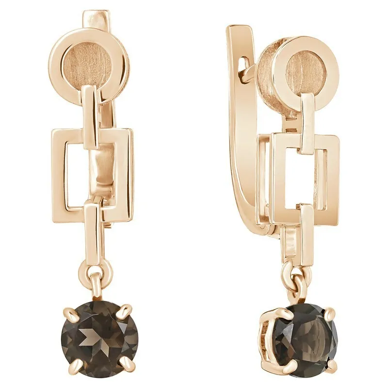 Серебряные серьги с натуральным раухтопаз - коллекция Классик / покрытие Розовое Золото