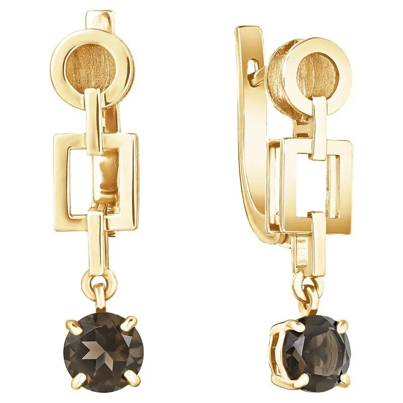 Серебряные серьги с натуральным раухтопаз - коллекция Классик / покрытие Желтое Золото