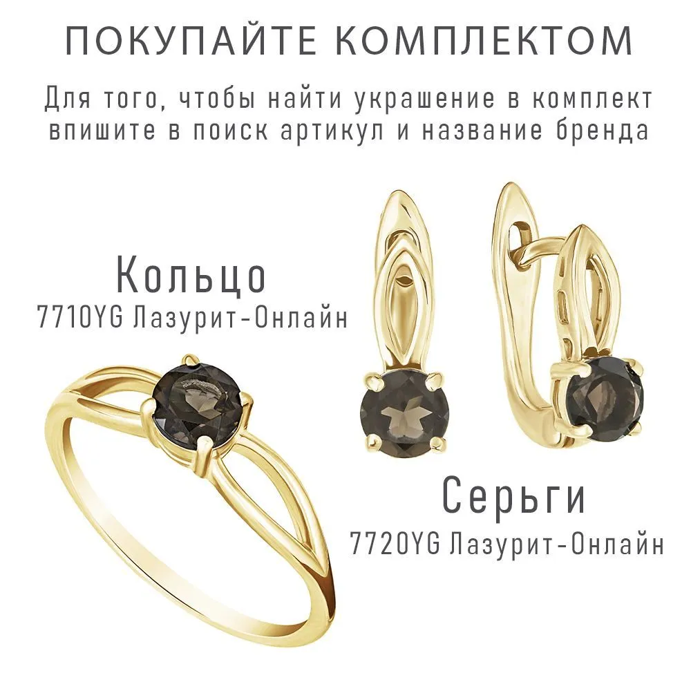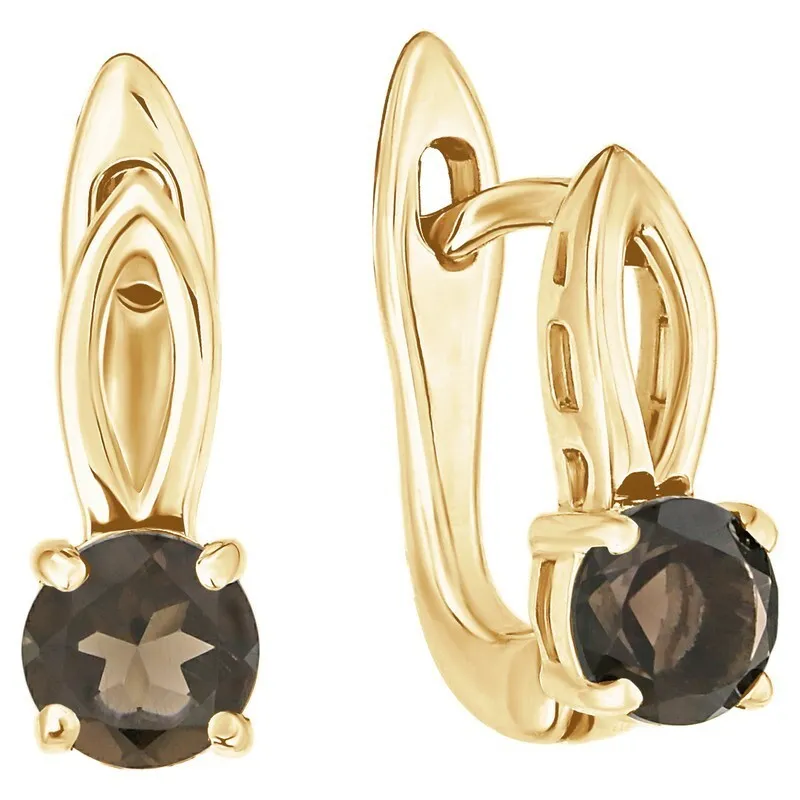 Серебряные серьги с натуральным раухтопазом (дымчатый кварц) - коллекция Мона. Серебряные серьги 925 пробы с покрытием желтое золото. Цвет покрытия соответствует швейцарскому цветовому стандарту NIHS -FF24ct и цвету чистого золото 999.99. На последней фотографии мы разместили сравнительную фотографию 3 цвета золотого покрытия. Помимо предания золотого цвета Вашему изделию, тонкий слой золота защищает от окисления. Для более стойкого эффекта золочения и долговечности покрытия мы дополнительно наносим подслой палладия (Pd). Средний вес изделия с камнем составляет 2.57 гр. Месторождение(я): Раухтопаз (Дымчатый кварц) (м-ие Додо ХМАО, Россия). Дымчатый кварц (Натуральный) круг 5 мм., средний вес: 0.60 карат. Все изделия собственного производства. Гарантия 12 месяцев.Арт. 7720. Раухтопаз – это разновидность кварца. Ранее он использовался в ювелирных украшениях, при вышивке картин, для магических ритуалов. Его влияние на владельца сразу становится заметно — человек успокаивается и становится рассудительным, легче выходит из депрессивных состояний. Часто использовался в приворотах, заговорах или для связи с миром духов.