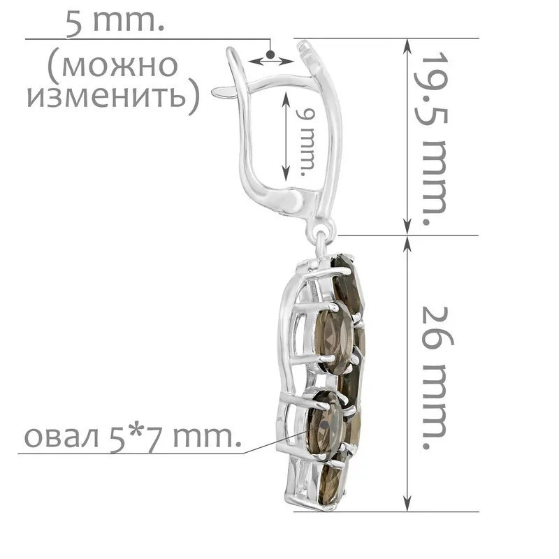 Серебряные серьги с натуральным раухтопазом (дымчатый кварц) - коллекция Аэлита / покрытие Белый Родий