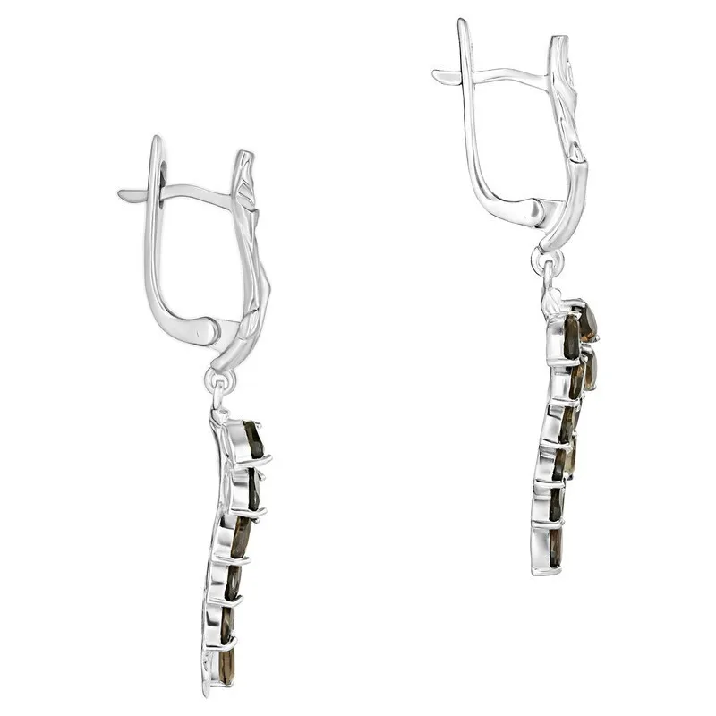 Серебряные серьги с натуральным раухтопазом - коллекция Флора / покрытие Чистое Серебро