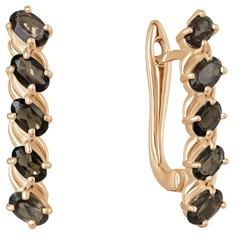 Серебряные серьги с натуральным раухтопазом - коллекция Колосок. Серебряные серьги 925 пробы с покрытием розовое золото. Цвет покрытия соответствует швейцарскому цветовому стандарту NIHS -4N и цвету розового золота 585 в России. На последней фотографии мы разместили сравнительную фотографию 3 цвета золотого покрытия. Помимо предания золотого цвета Вашему изделию, тонкий слой золота защищает от окисления. Для более стойкого эффекта золочения и долговечности покрытия мы дополнительно наносим подслой палладия (Pd). Средний вес изделия с камнями 4.28 гр. Месторождение: Раухтопаз (Ильменские горы, Россия). Раухтопаз (Натуральный) овал 3*5 мм., средний вес: 0.22 карат. Все изделия собственного производства. Арт. 7981. Раухтопаз – это разновидность кварца. Ранее он использовался в ювелирных украшениях, при вышивке картин, для магических ритуалов. Его влияние на владельца сразу становится заметно — человек успокаивается и становится рассудительным, легче выходит из депрессивных состояний. Часто использовался в приворотах, заговорах или для связи с миром духов.