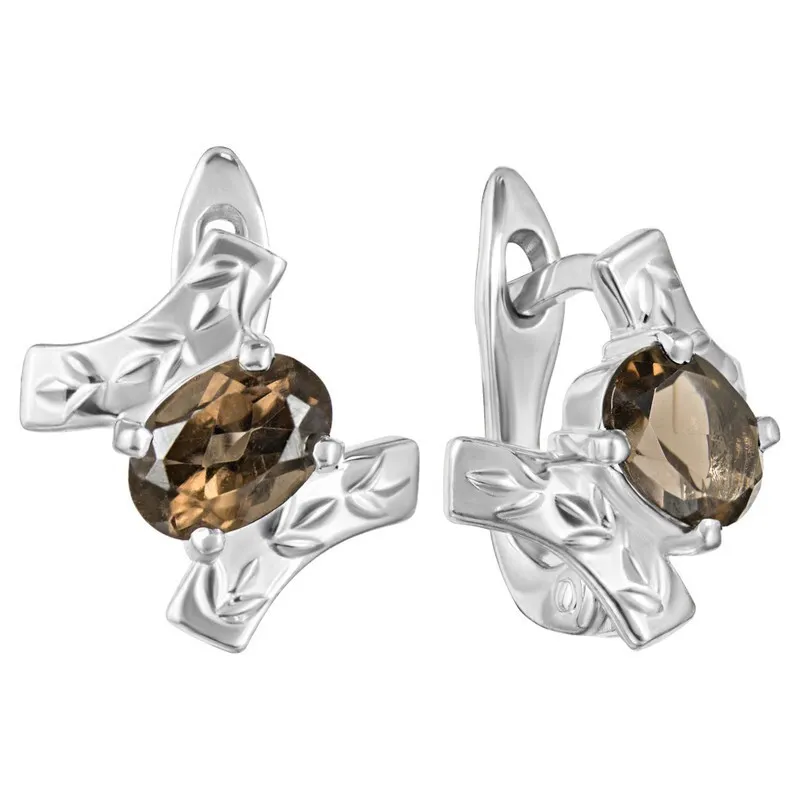 Серебряные серьги с натуральным раухтопазом - коллекция Тея / покрытие Палладий