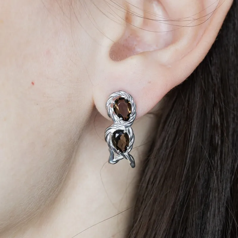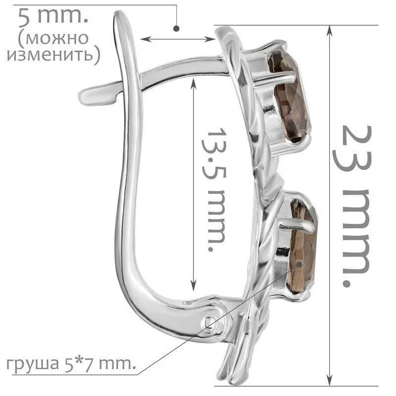 Серебряные серьги с натуральным раухтопазом - коллекция Ривьера / покрытие Чистое Серебро
