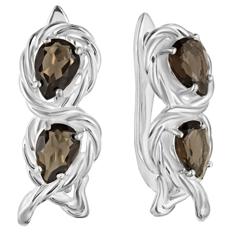 Серебряные серьги с натуральным раухтопазом - коллекция Ривьера. Средний вес изделия с камнями 4.78 гр. Месторождение: Раухтопаз (Дымчатый кварц) (м-ние Додо ХМАО, Россия) Раухтопаз (Натуральный) груша 5*7 мм., средний вес: 0.63 карат. Все изделия собственного производства. Гарантия 12 месяцев.Арт. 8159. Раухтопаз – это разновидность кварца. Ранее он использовался в ювелирных украшениях, при вышивке картин, для магических ритуалов. Его влияние на владельца сразу становится заметно — человек успокаивается и становится рассудительным, легче выходит из депрессивных состояний. Часто использовался в приворотах, заговорах или для связи с миром духов.