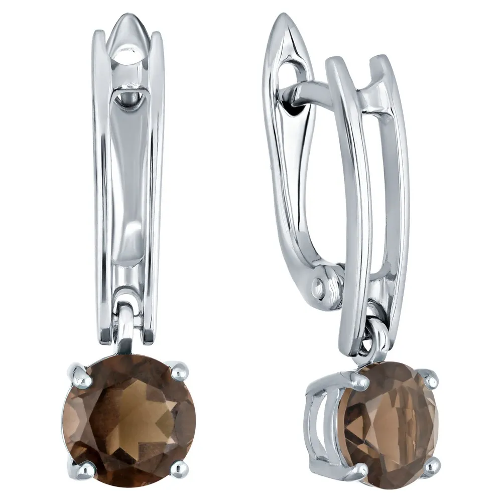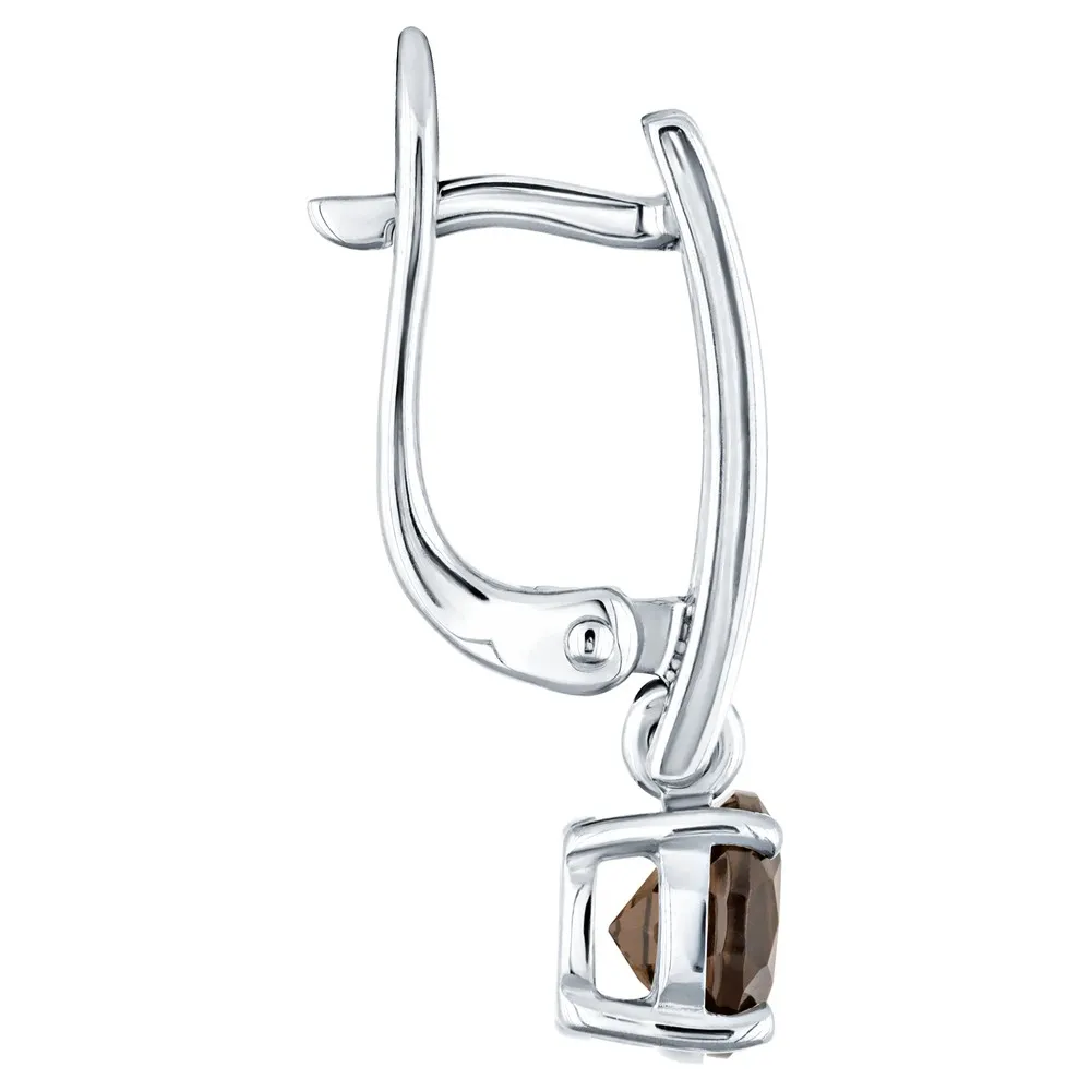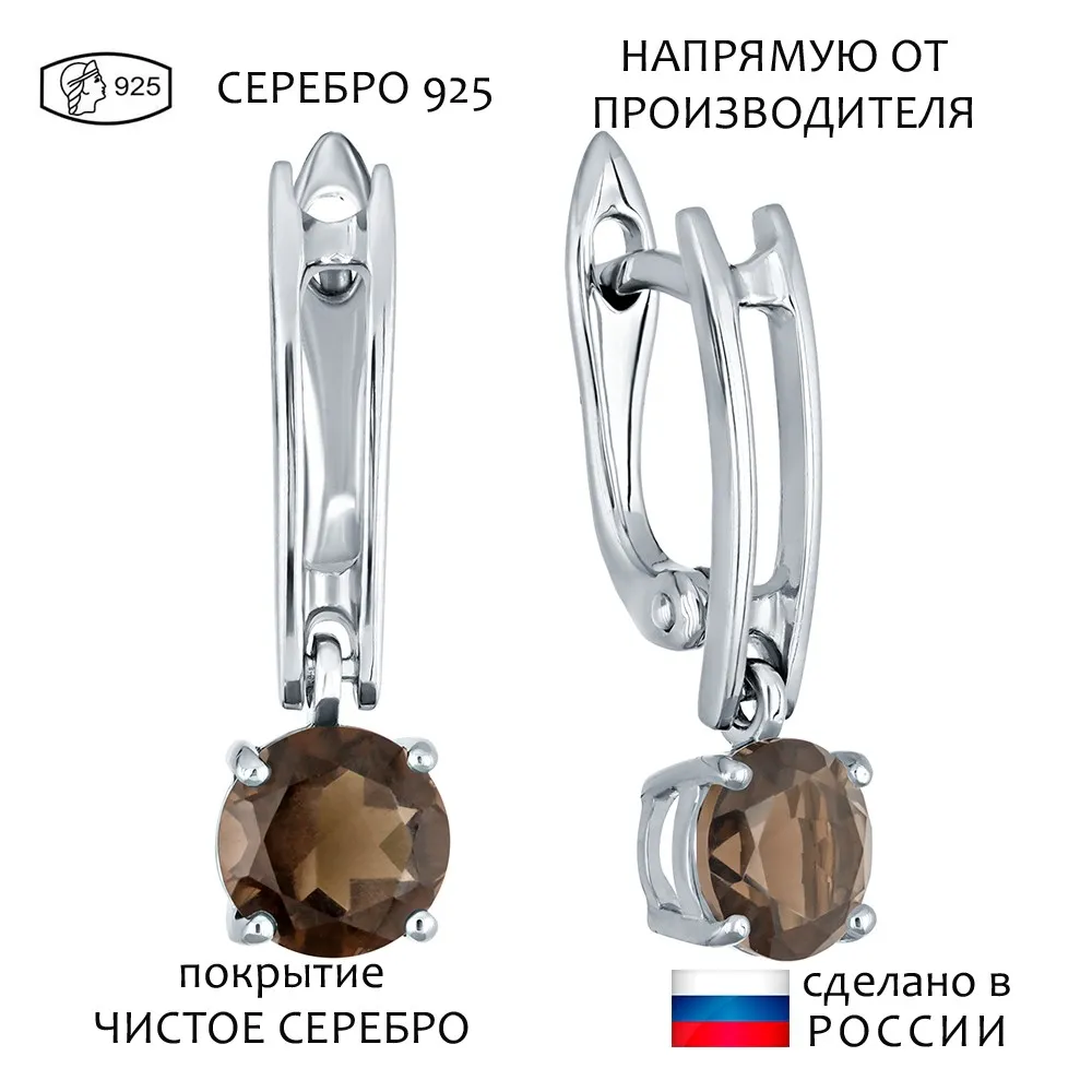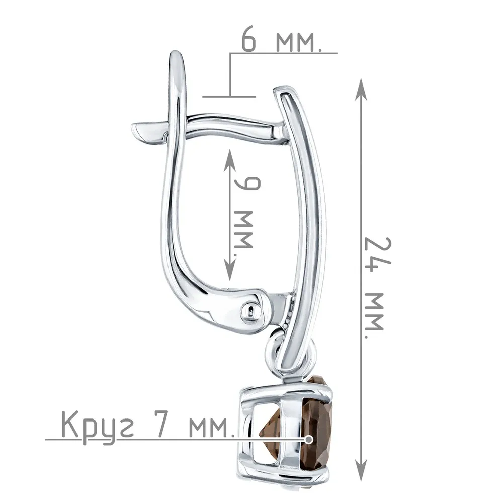 Серебряные серьги с натуральным раухтопазом - коллекция Классик (мини) / покрытие Чистое Серебро