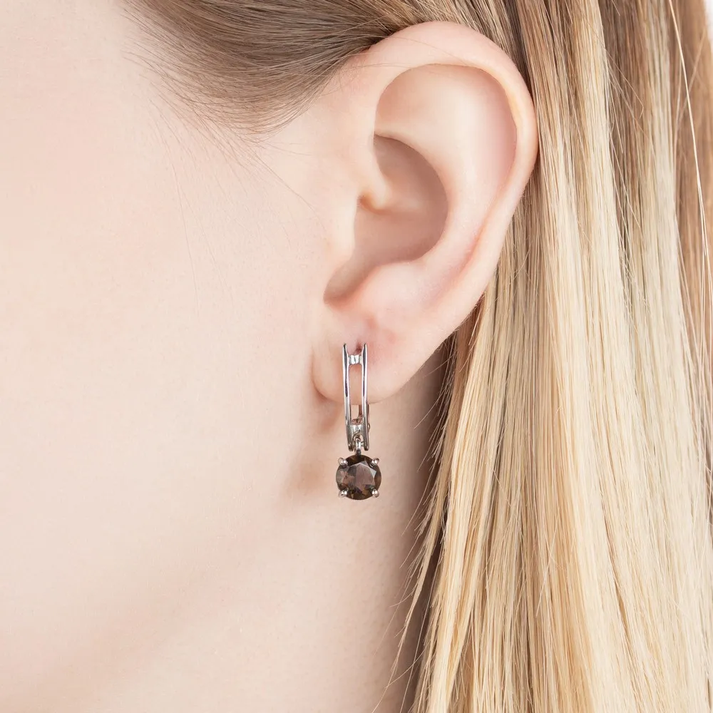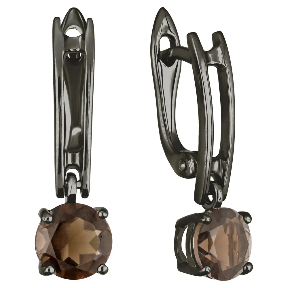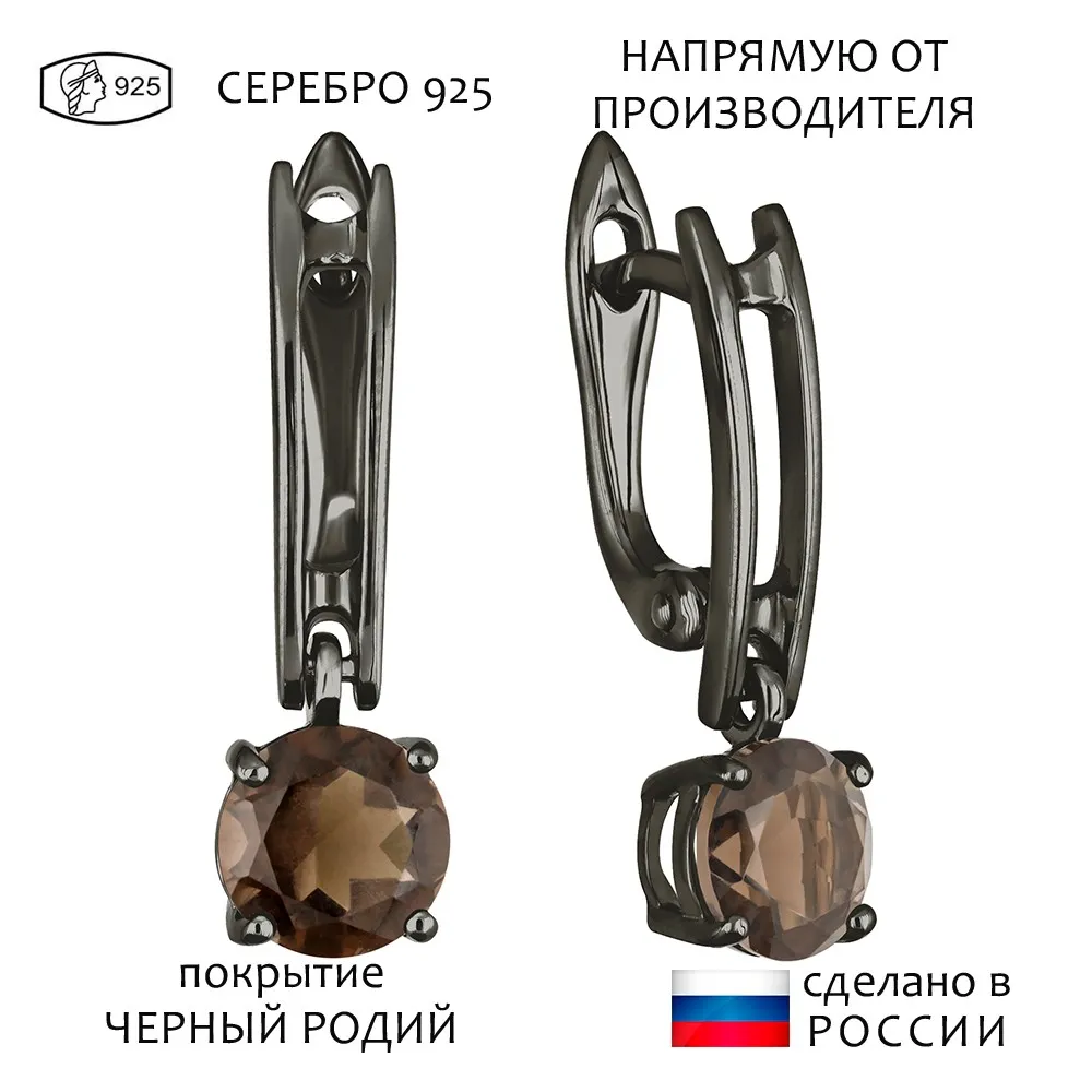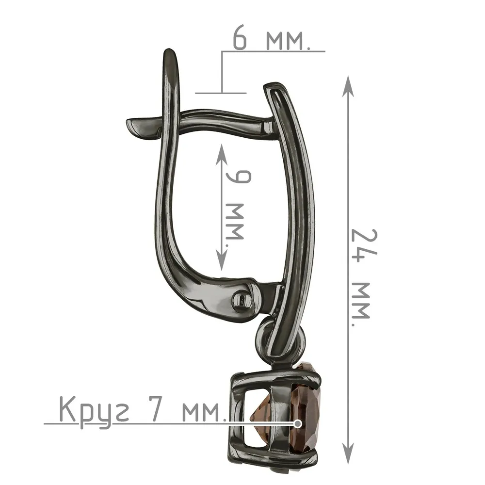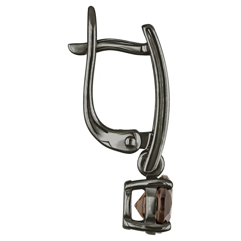 Серебряные серьги с натуральным раухтопазом - коллекция Классик (мини), покрытие Черный Родий.