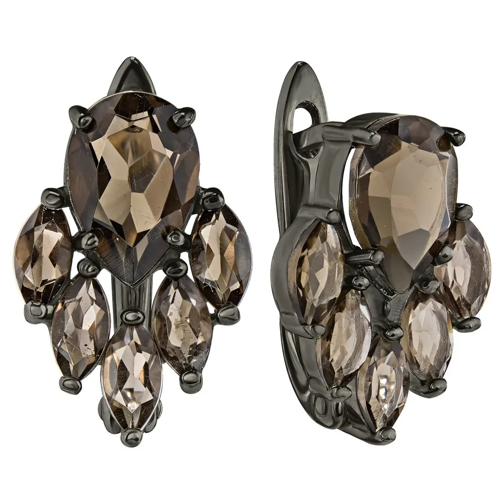 Серебряные серьги с натуральным раухтопазом - коллекция Зарница, покрытие Черный Родий.