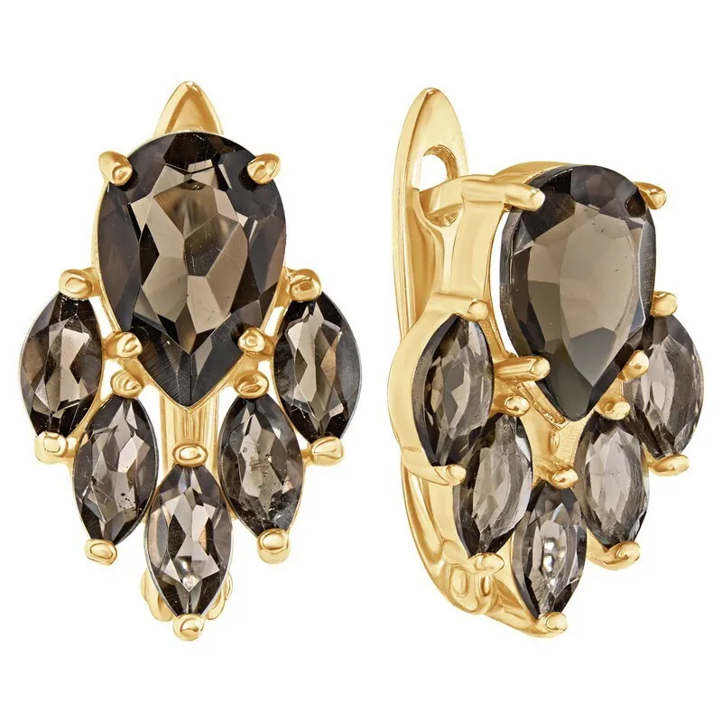 Серебряные серьги с натуральным раухтопазом - коллекция Зарница. Серебряные серьги 925 пробы с покрытием желтое золото. Цвет покрытия соответствует швейцарскому цветовому стандарту NIHS -FF24ct и цвету чистого золото 999.99. На последней фотографии мы разместили сравнительную фотографию 3 цвета золотого покрытия. Помимо предания золотого цвета Вашему изделию, тонкий слой золота защищает от окисления. Для более стойкого эффекта золочения и долговечности покрытия мы дополнительно наносим подслой палладия (Pd). Средний вес изделия с камнями 6.01 гр. Месторождение: Раухтопаз (Дымчатый кварц) (м-ние Додо ХМАО, Россия). Раухтопаз (Натуральный) груша 7*10 мм., средний вес: 1.64 карат. Все изделия собственного производства. Гарантия 12 месяцев.Арт. 8337. Раухтопаз – это разновидность кварца. Ранее он использовался в ювелирных украшениях, при вышивке картин, для магических ритуалов. Его влияние на владельца сразу становится заметно — человек успокаивается и становится рассудительным, легче выходит из депрессивных состояний. Часто использовался в приворотах, заговорах или для связи с миром духов.
