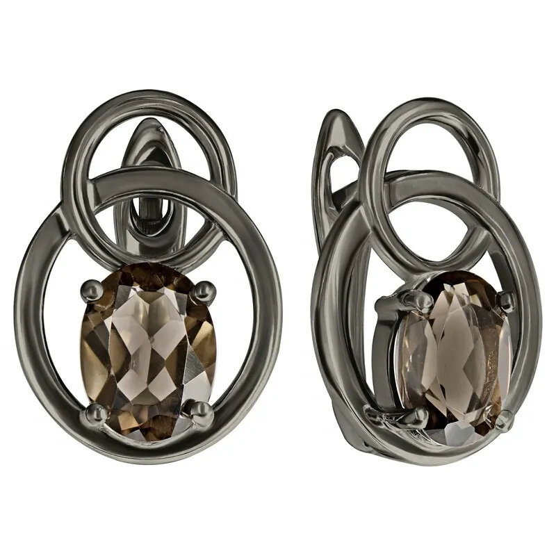 Серебряные серьги с натуральным раухтопазом - коллекция Юнона, покрытие Черный Родий.