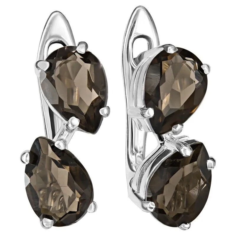 Серебряные серьги с натуральным раухтопазом - коллекция Дуэт / Без покрытия.Средний вес украшения с камнями 2.92 гр.Месторождение(я): Раухтопаз (Дымчатый кварц) (м-ие Додо ХМАО, Россия).Ювелирные вставки:Раухтопаз (Натуральный) груша 5*7 мм., средний вес: 0.63 карат.Все изделия собственного производства и имеют гарантию 12 месяцев. Арт. 8686NP . Раухтопаз – это разновидность кварца. Ранее он использовался в ювелирных украшениях, при вышивке картин, для магических ритуалов. Его влияние на владельца сразу становится заметно — человек успокаивается и становится рассудительным, легче выходит из депрессивных состояний. Часто использовался в приворотах, заговорах или для связи с миром духов.